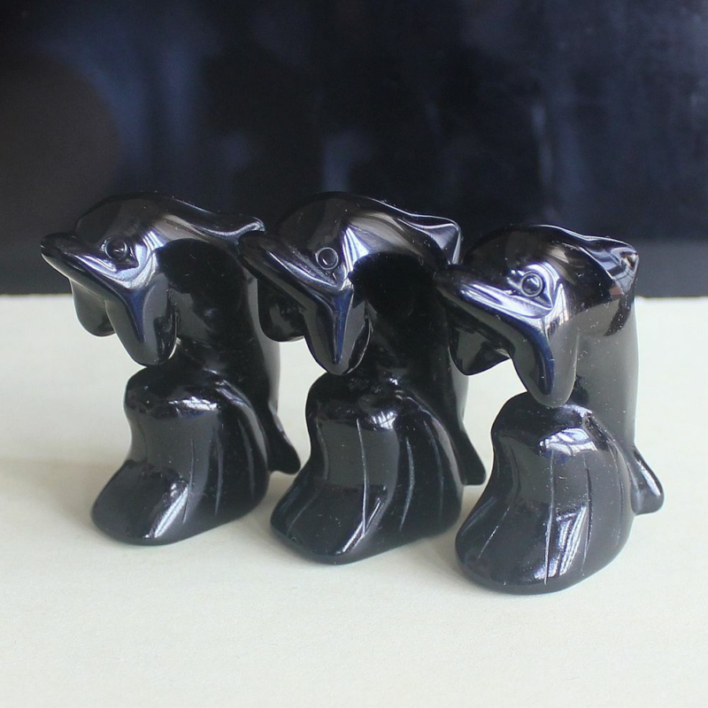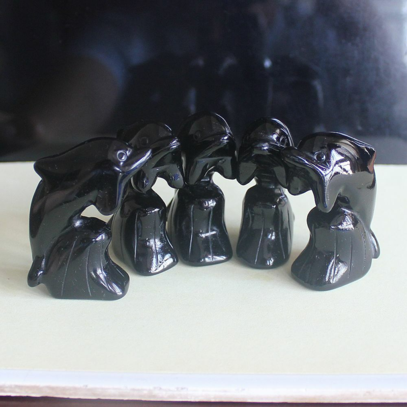 2'' Carved mixed gemstone crystal rose quartz opalite dolphin animal figurine