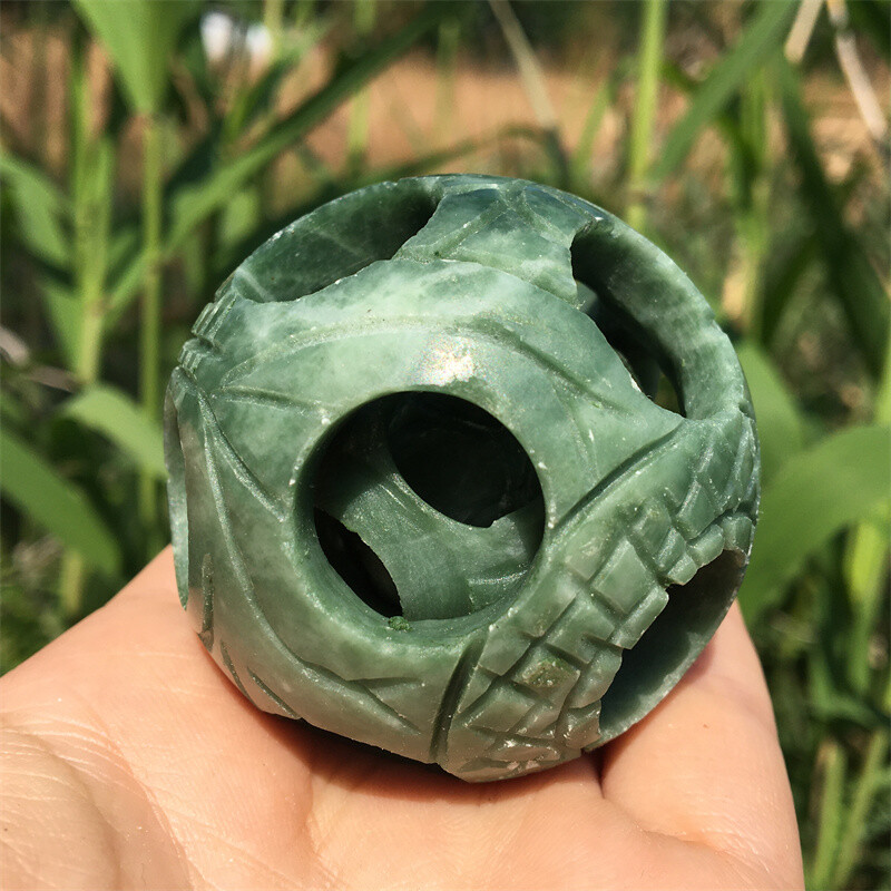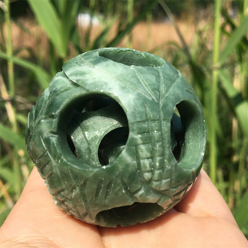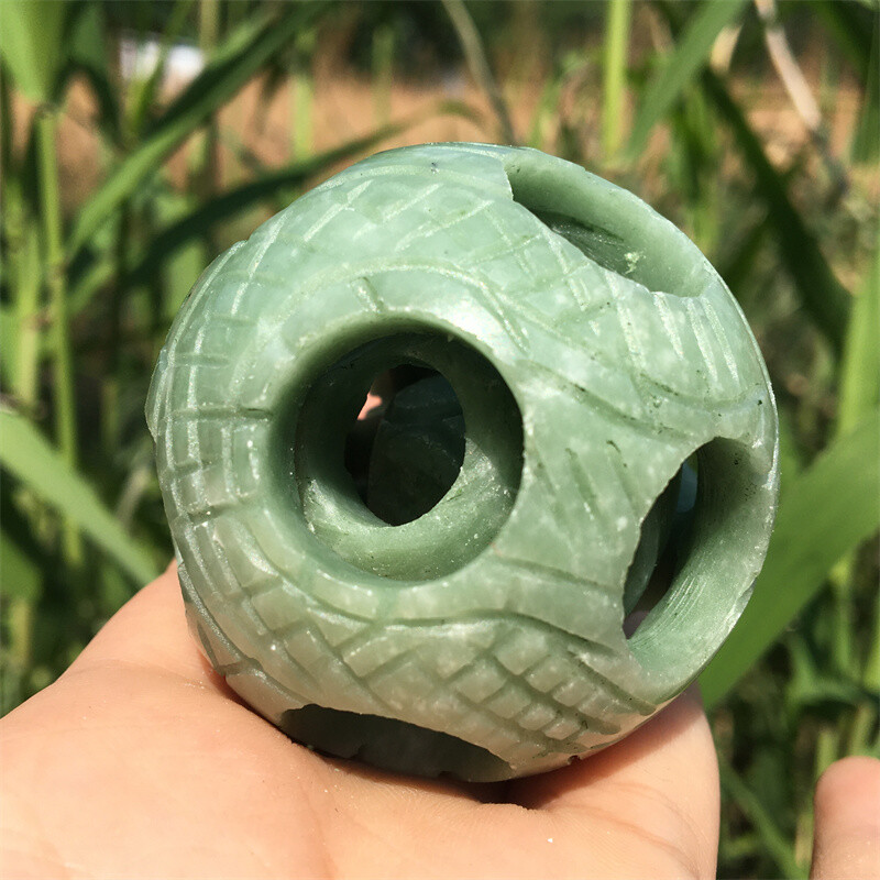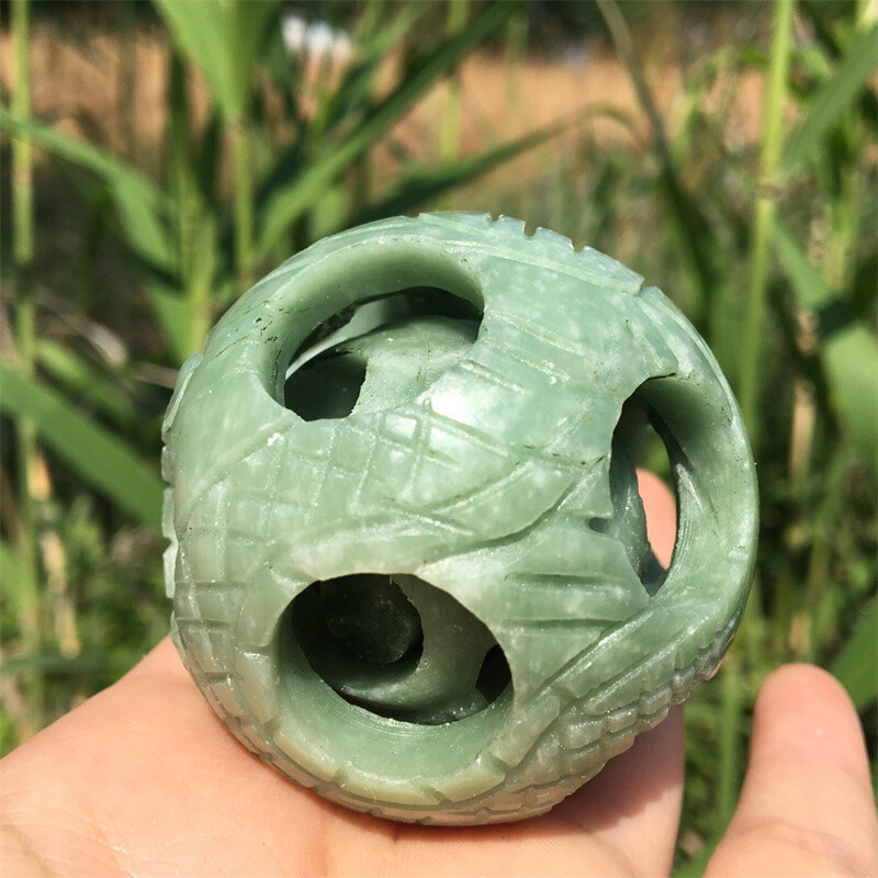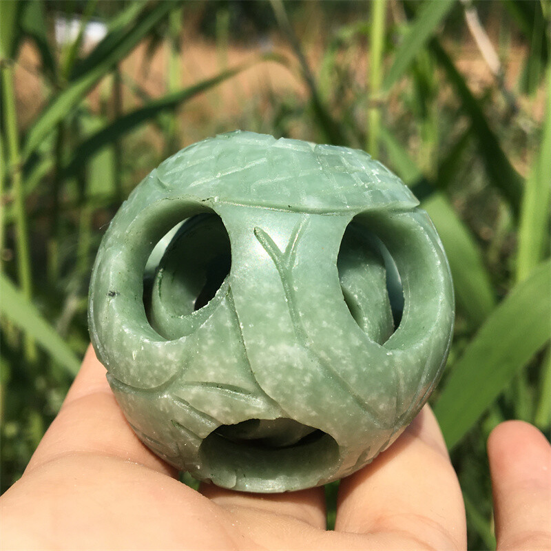 2" Natural green jade Exquisite Carved sphere Quartz Crystal reiki ball care