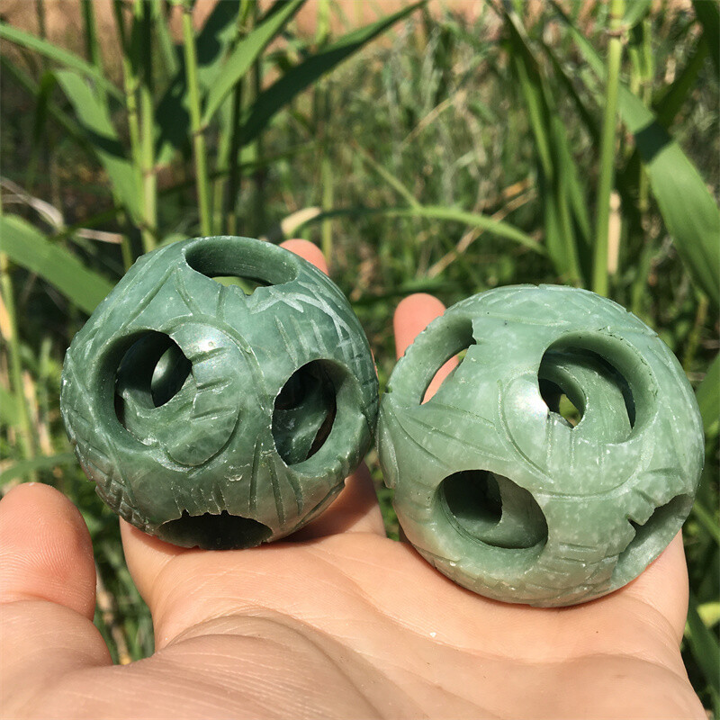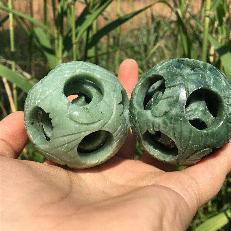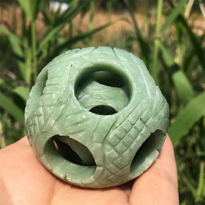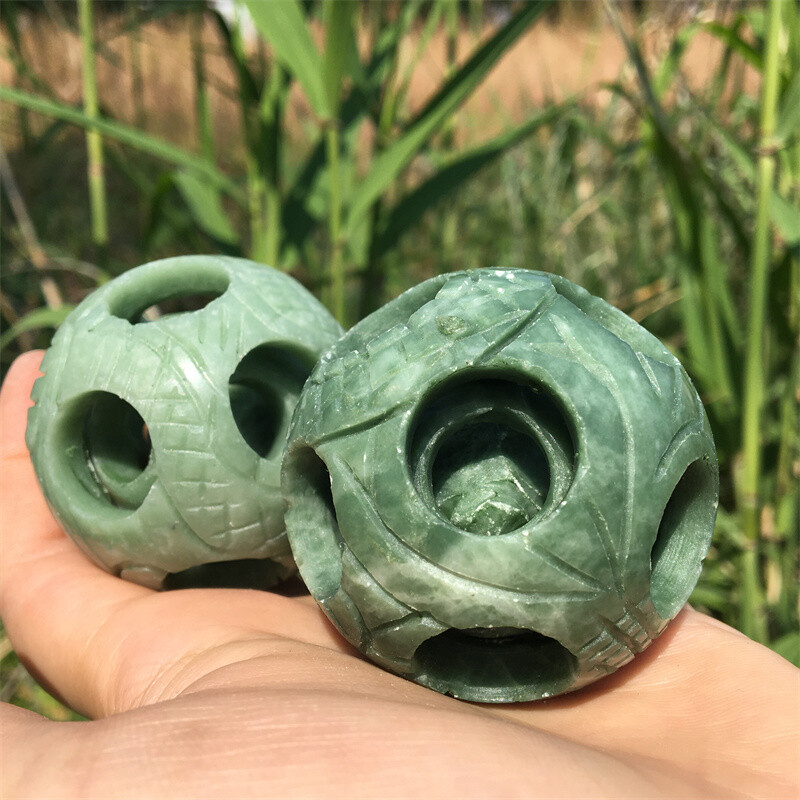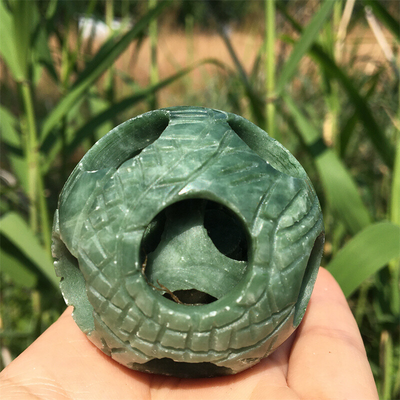 2" Natural green jade Exquisite Carved sphere Quartz Crystal reiki ball care