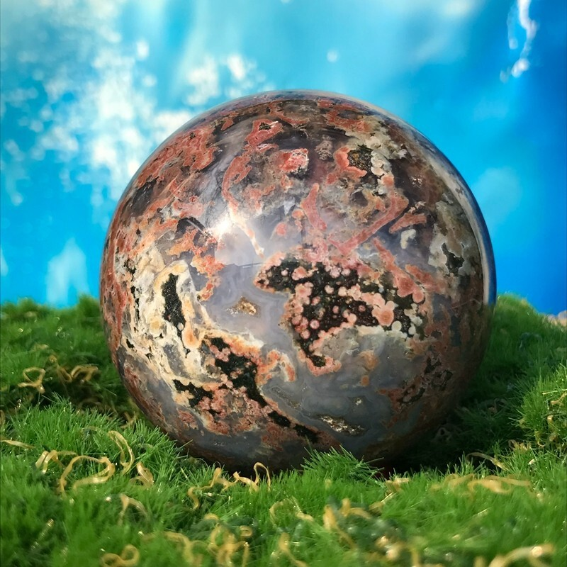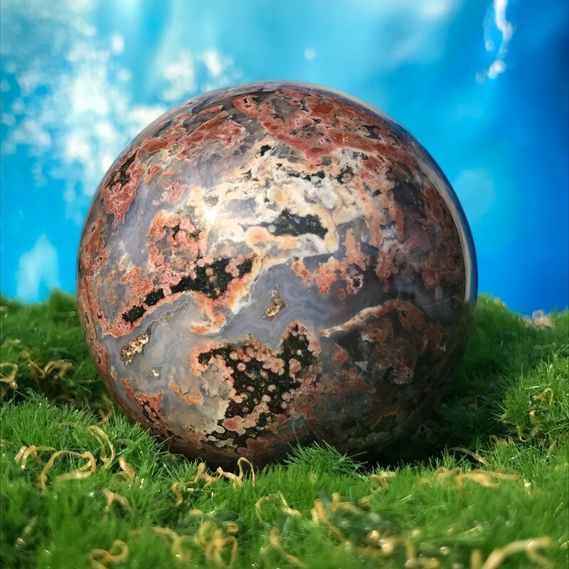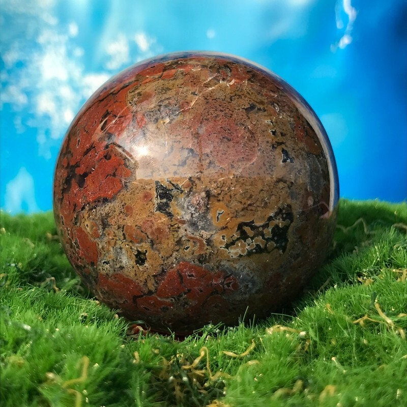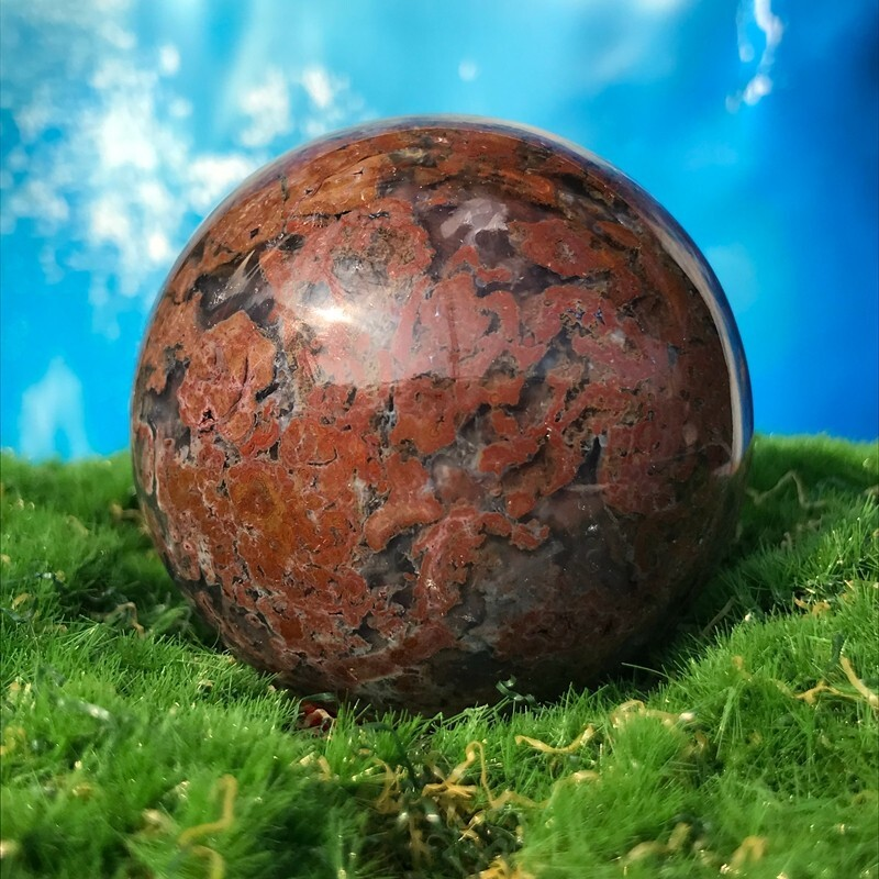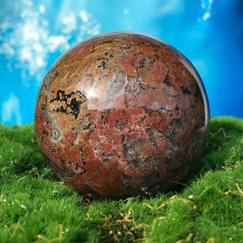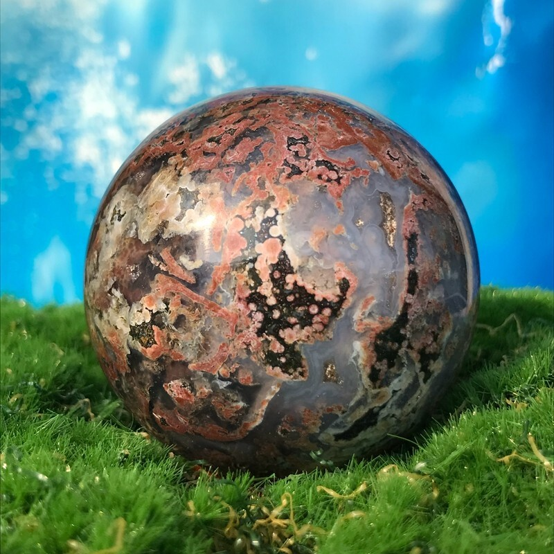 220GRare Natural Ocean Jasper Quartz Ball Crystal Ball Sample Repair