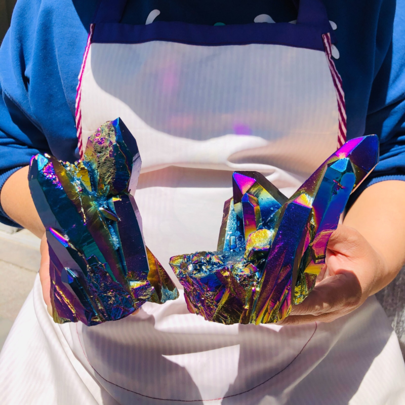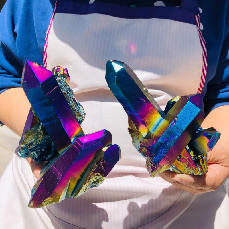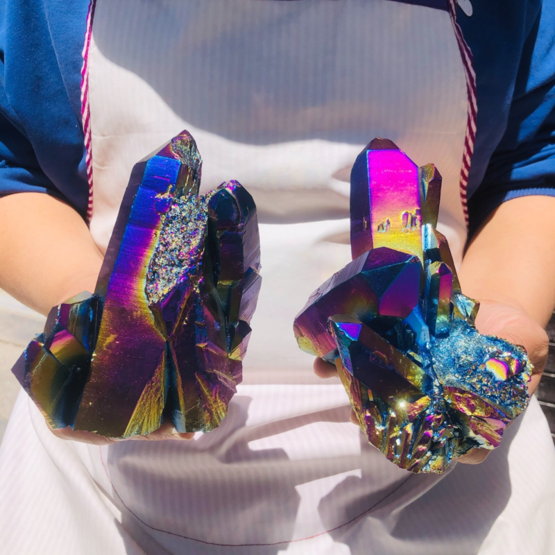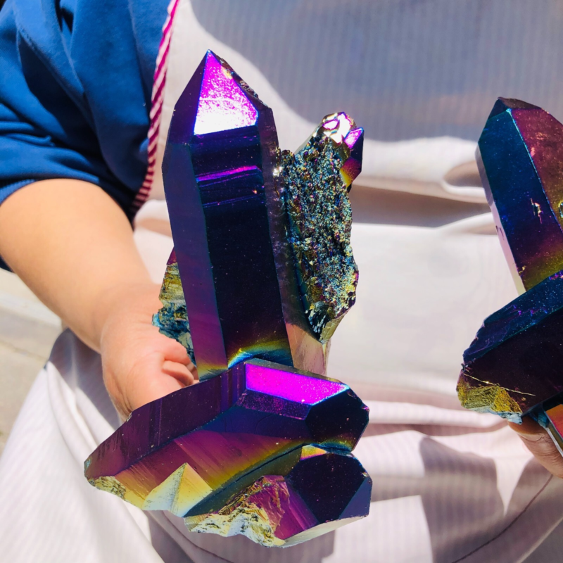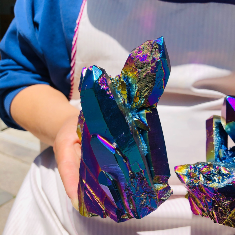 2pieces3.43LB Color Flame Electroplate Quartz Crystal Specimen Healing point 481