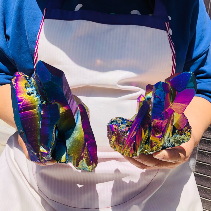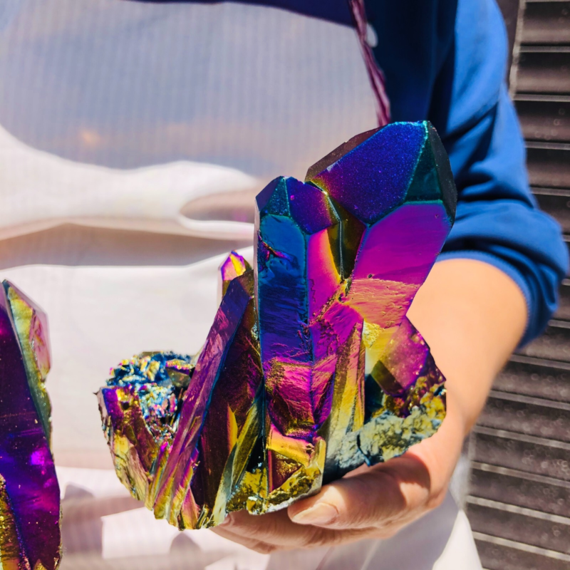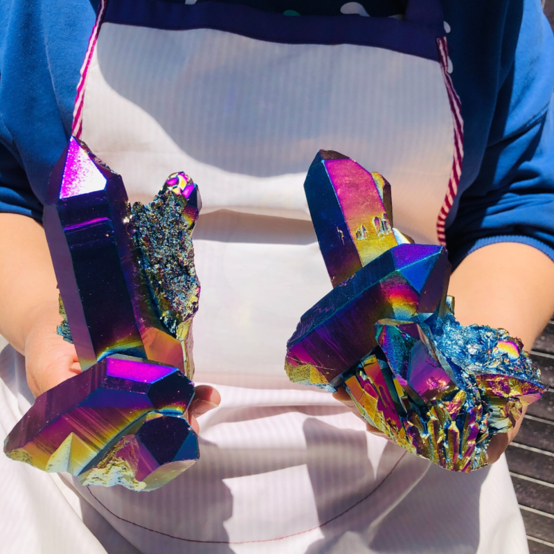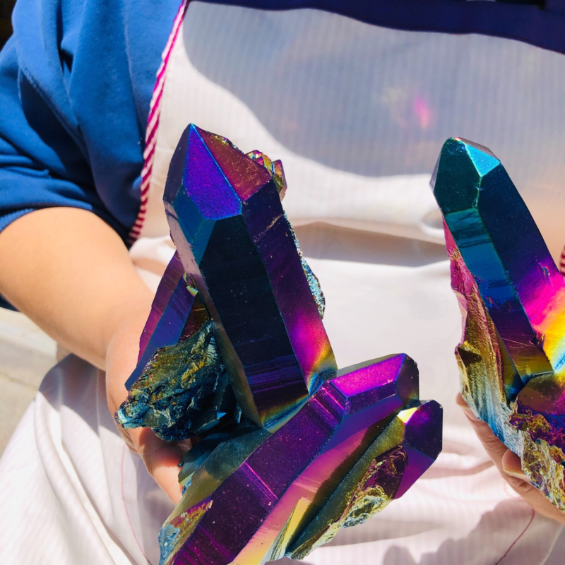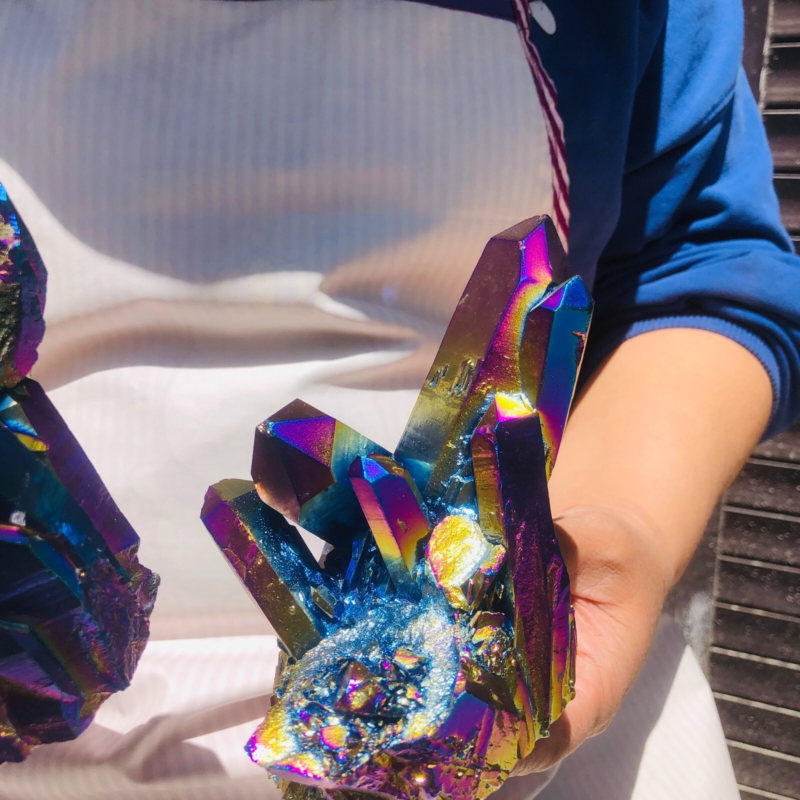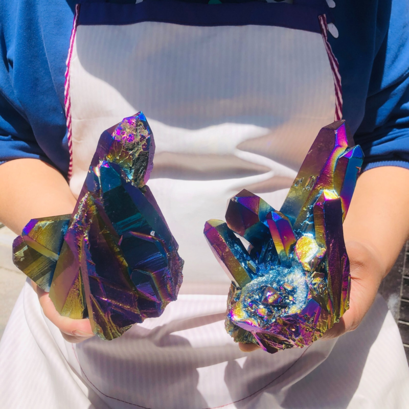 2pieces3.43LB Color Flame Electroplate Quartz Crystal Specimen Healing point 481