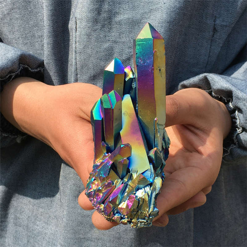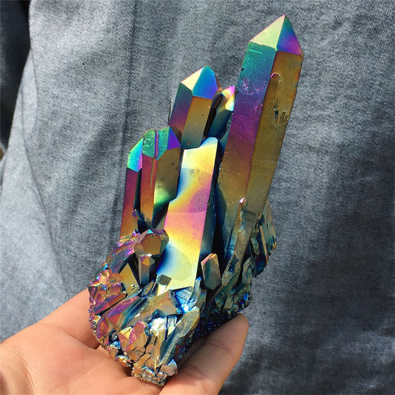 320g Electroplate Rainbow cluster quartz crystal mineral specimen reiki healing