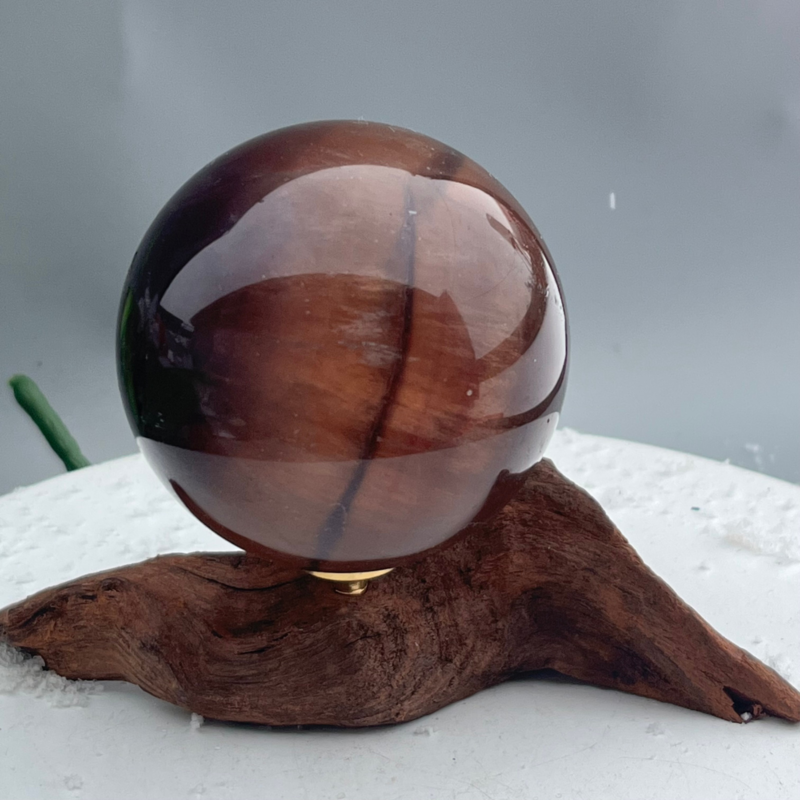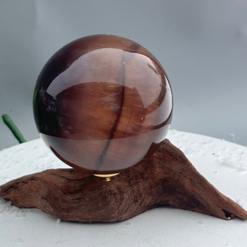 339 Ke Natural Fluorite Ball Colorful Quartz Crystal Gem Repair + Bracket