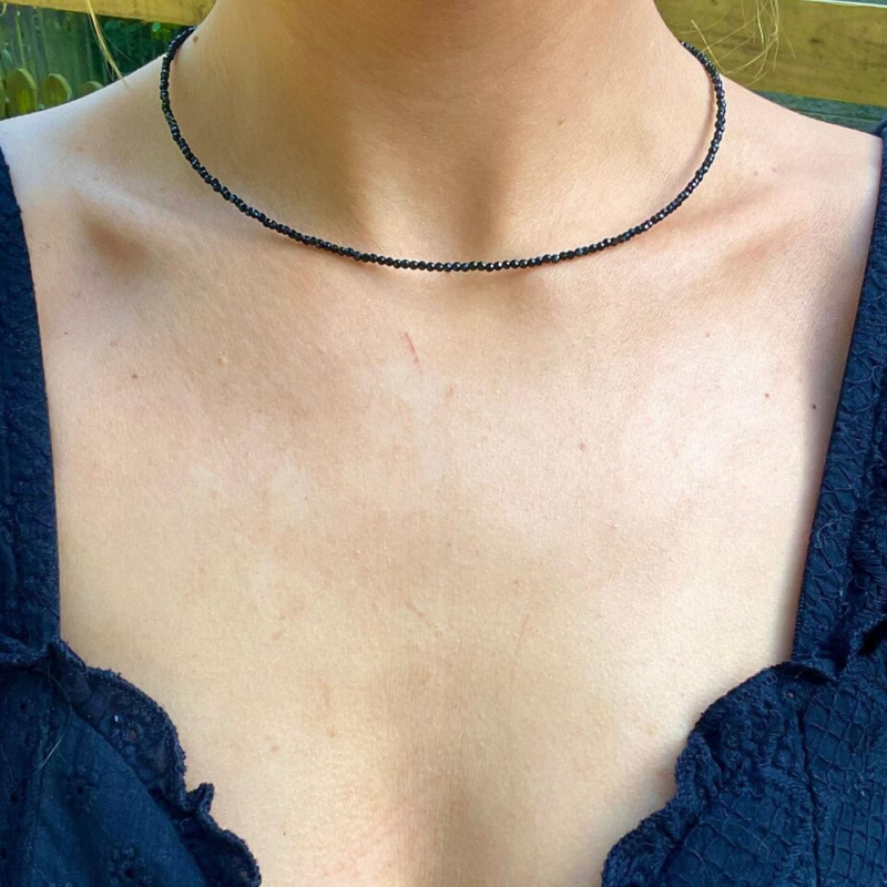 3mm Black Spinel Choker necklace minimalist crystal healing natural stone 18"