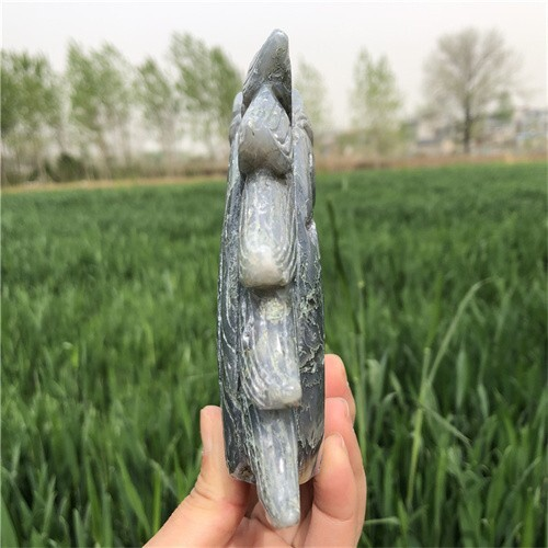 530g Natural Moss Agate Unicorn Carved Reiki Quartz Crystal Skull Figurines Crys