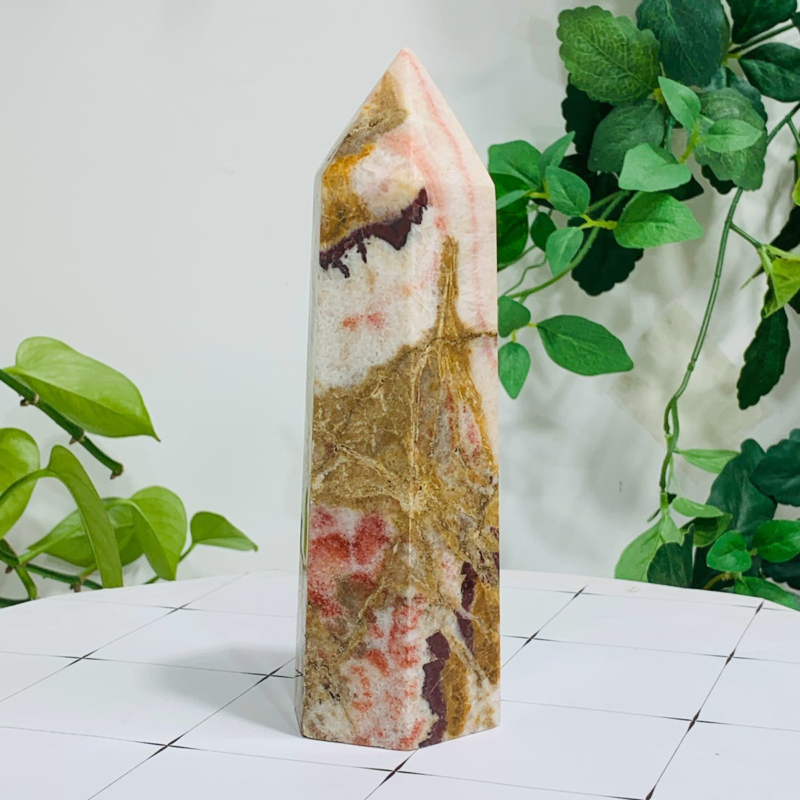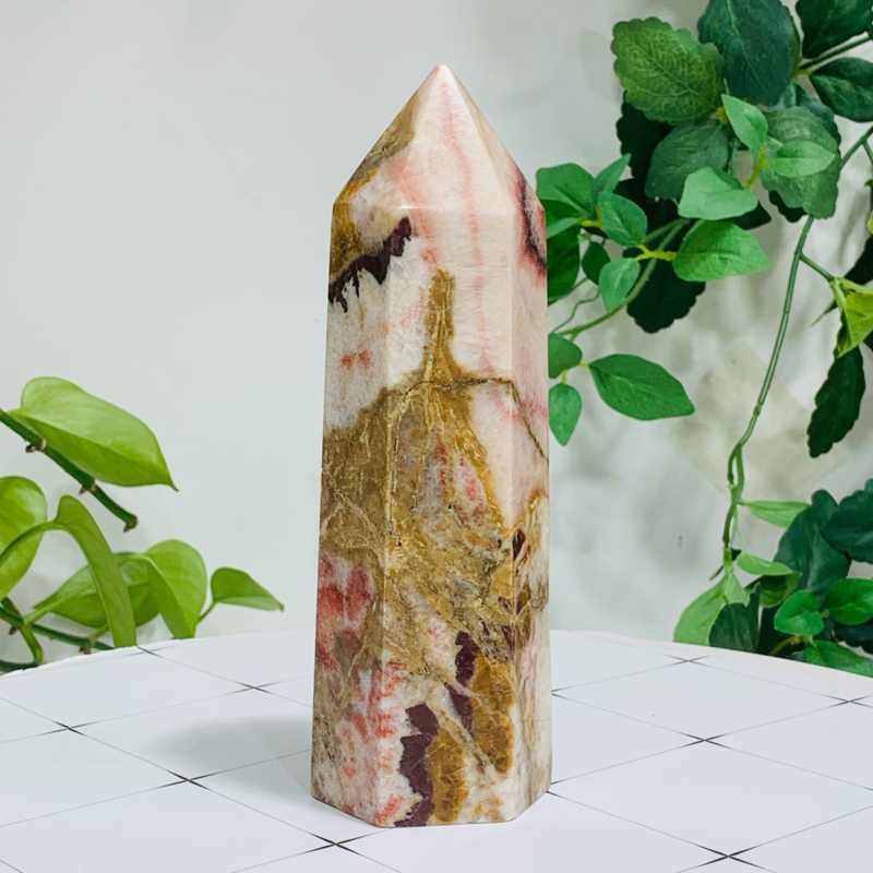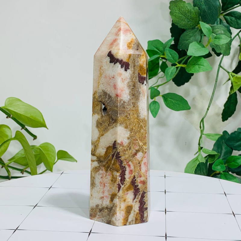 652g Natural Pork Stone Quartz Obelisk Crystal Wand Point Tower Reiki Healing