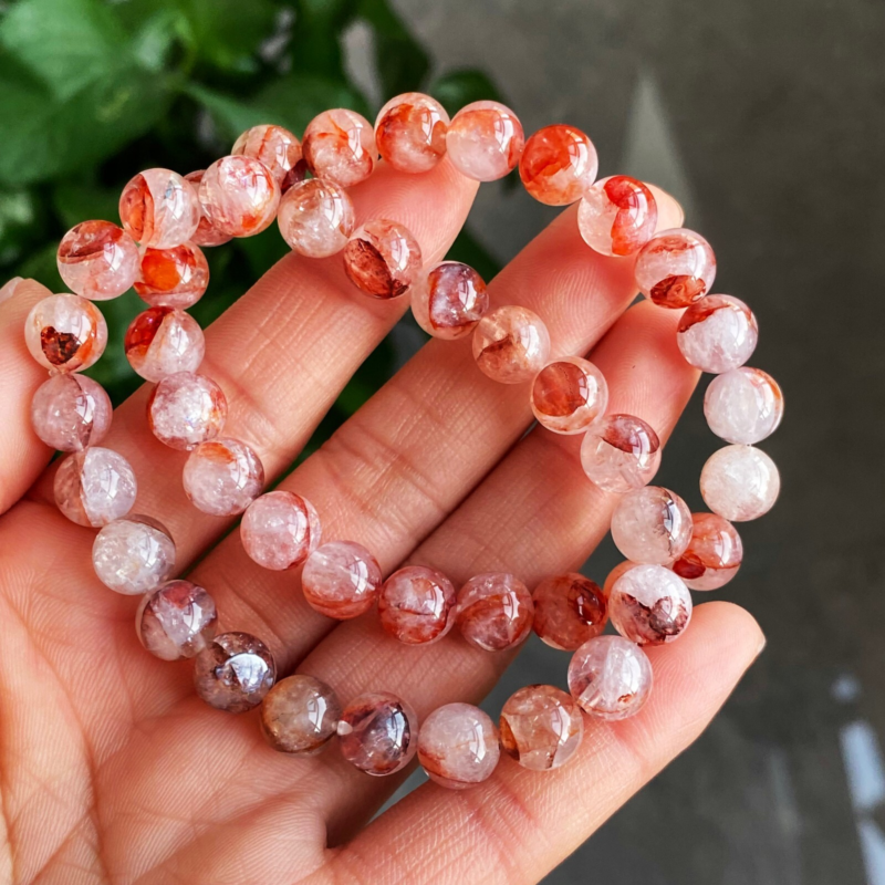 8.5mm 2pcs Natural Red Gelatinous Phantom Quartz Stretch Crystal Bracelet
