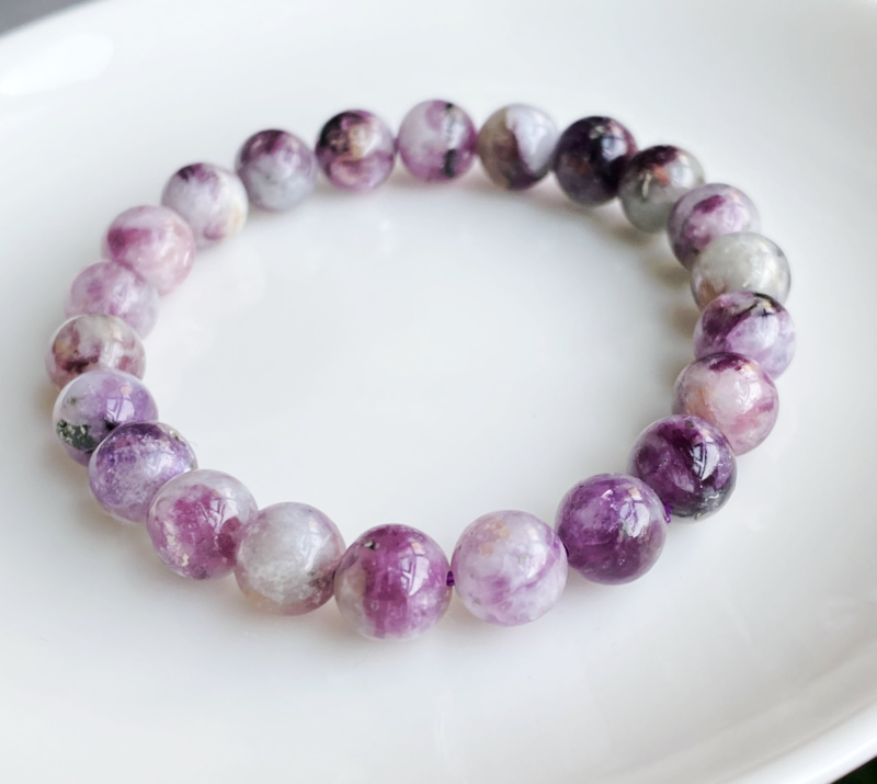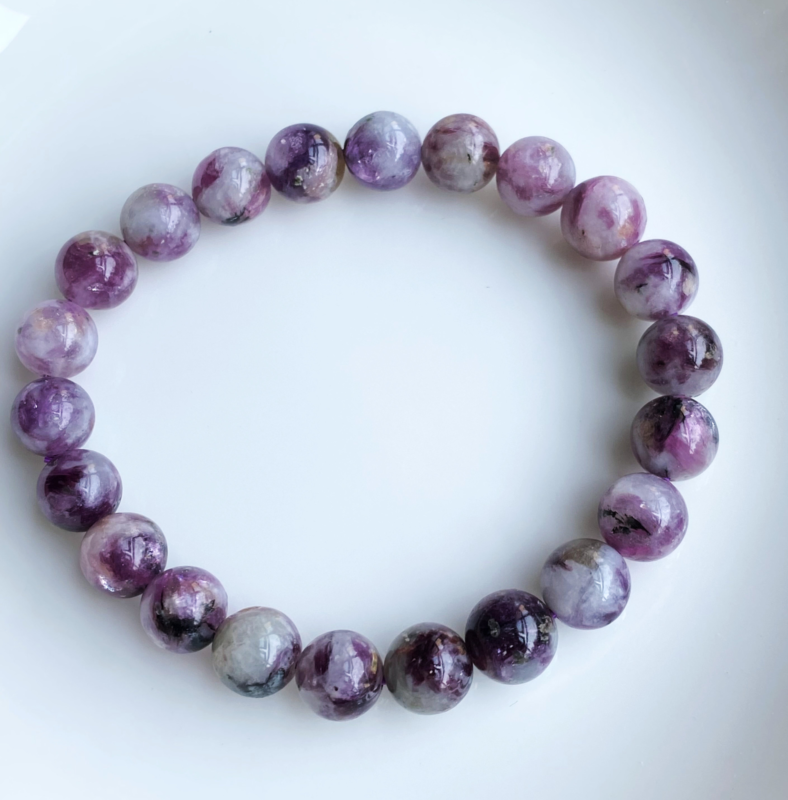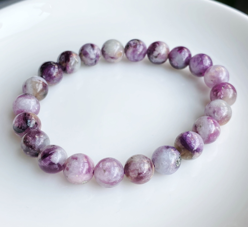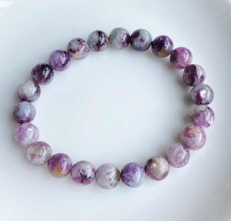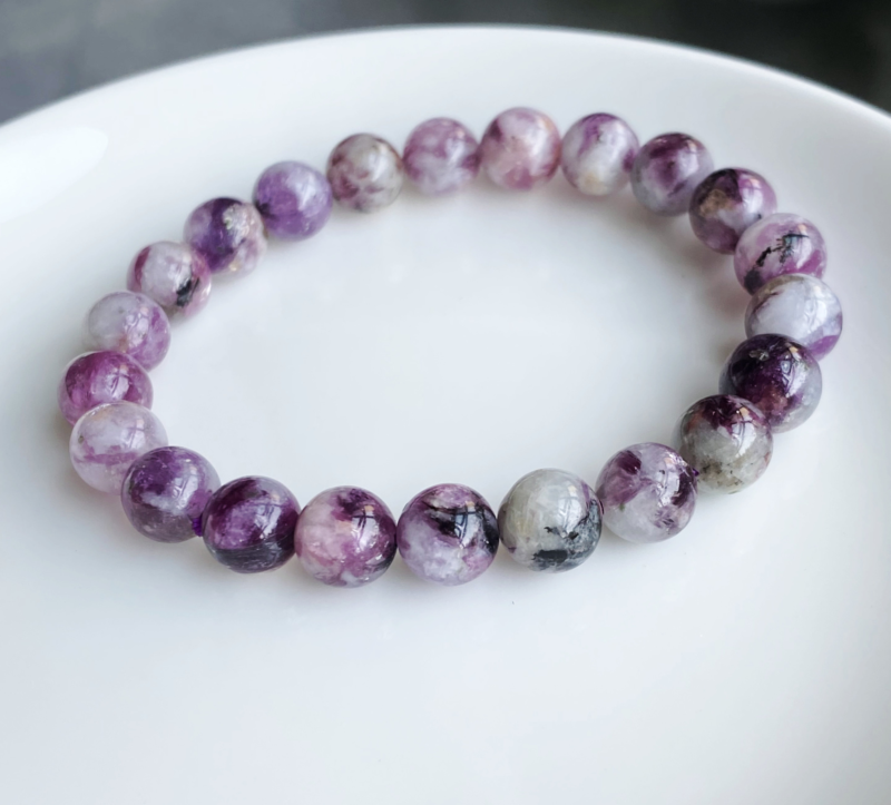 8.5mm Natural PurplelepidoliteQuartz Crystal Water Sticky Beads Bracelet