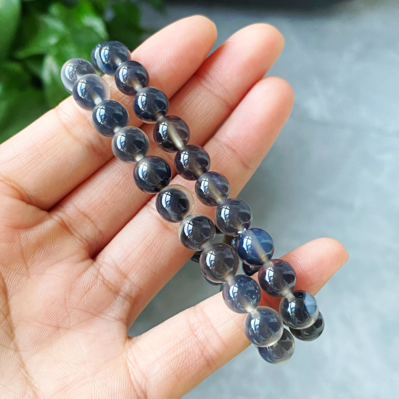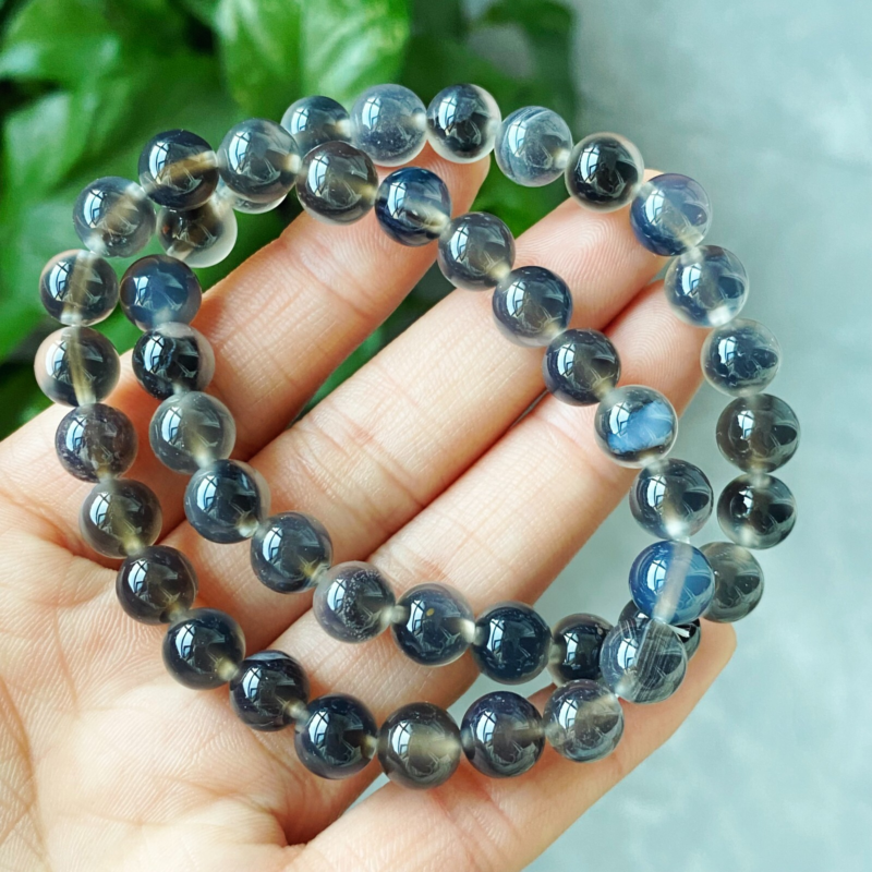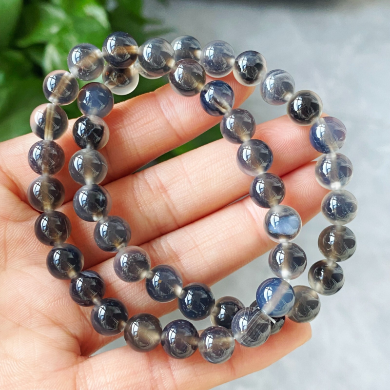 8mm 2Pcs Natural Black Sugar Heart Agate Quartz Crystal Bracelet