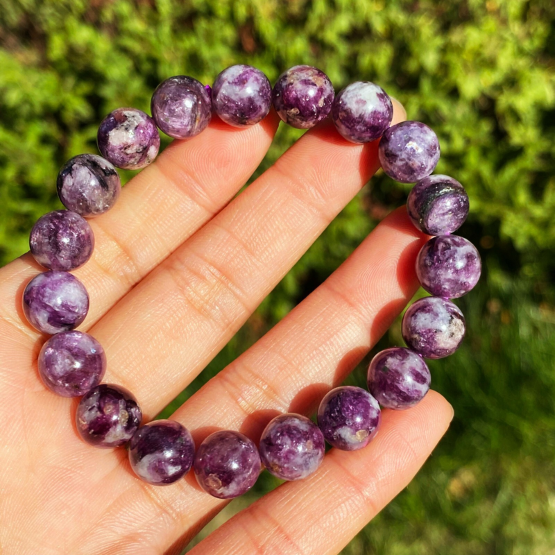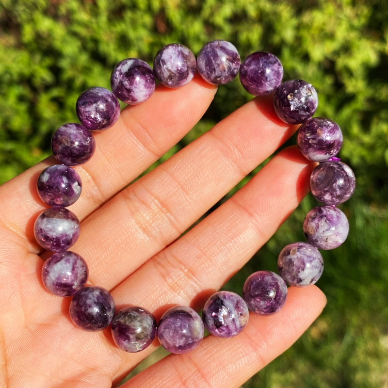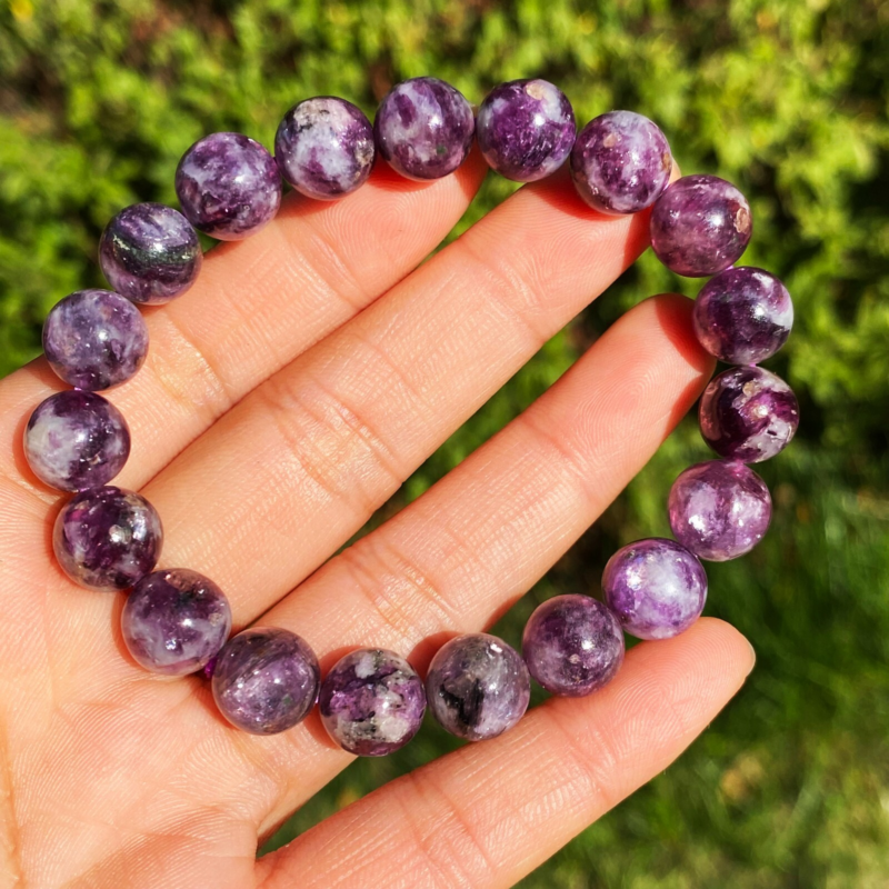 Natural Purple lepidolite Quartz Crystal Gemstone Beads Bracelet