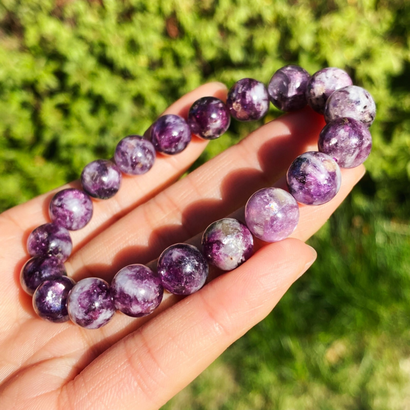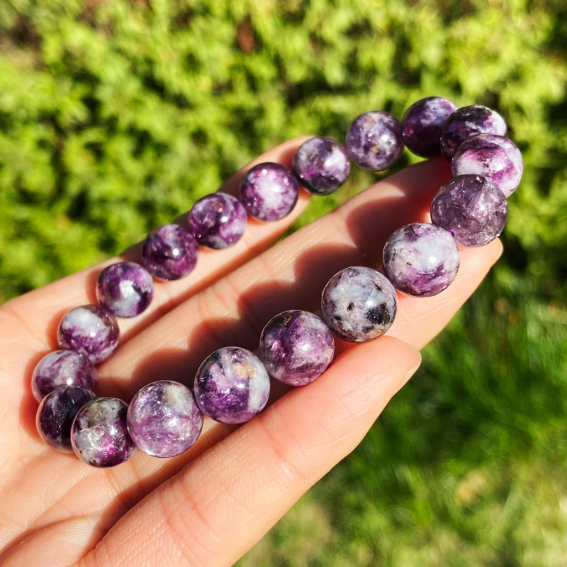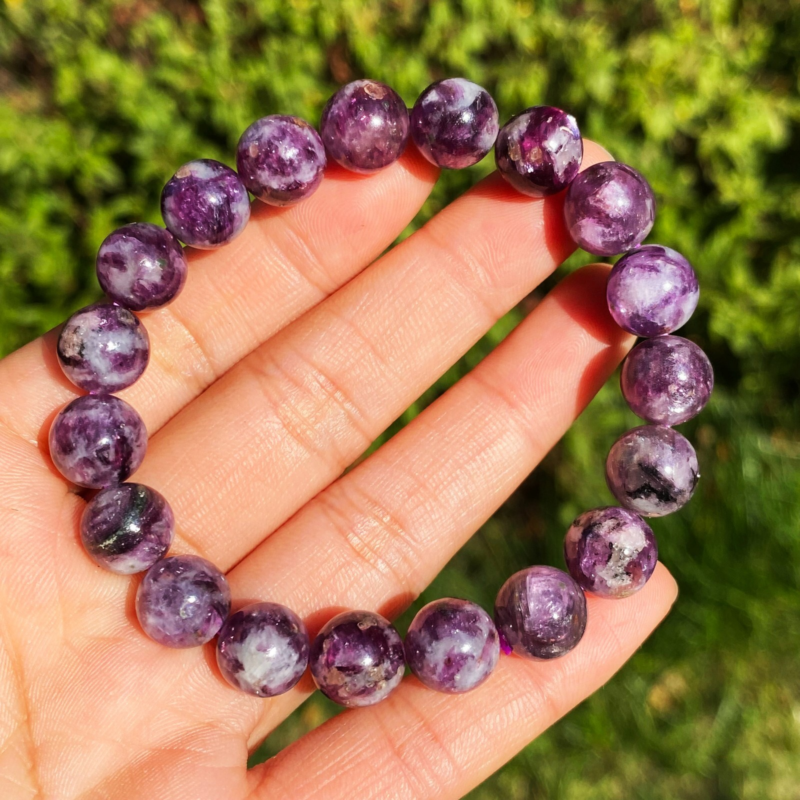 Natural Purple lepidolite Quartz Crystal Gemstone Beads Bracelet