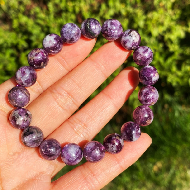 9.5mm Natural Purple lepidolite Quartz Crystal Gemstone Beads Bracelet