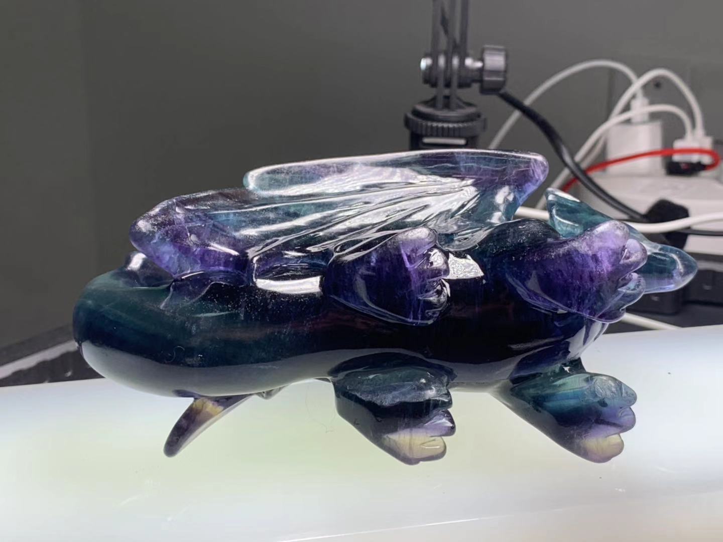 Vibrante XL Dragón de Cristal de Fluorita Púrpura - Dragón de Cristal, Talla de Dragón, Criatura Mítica