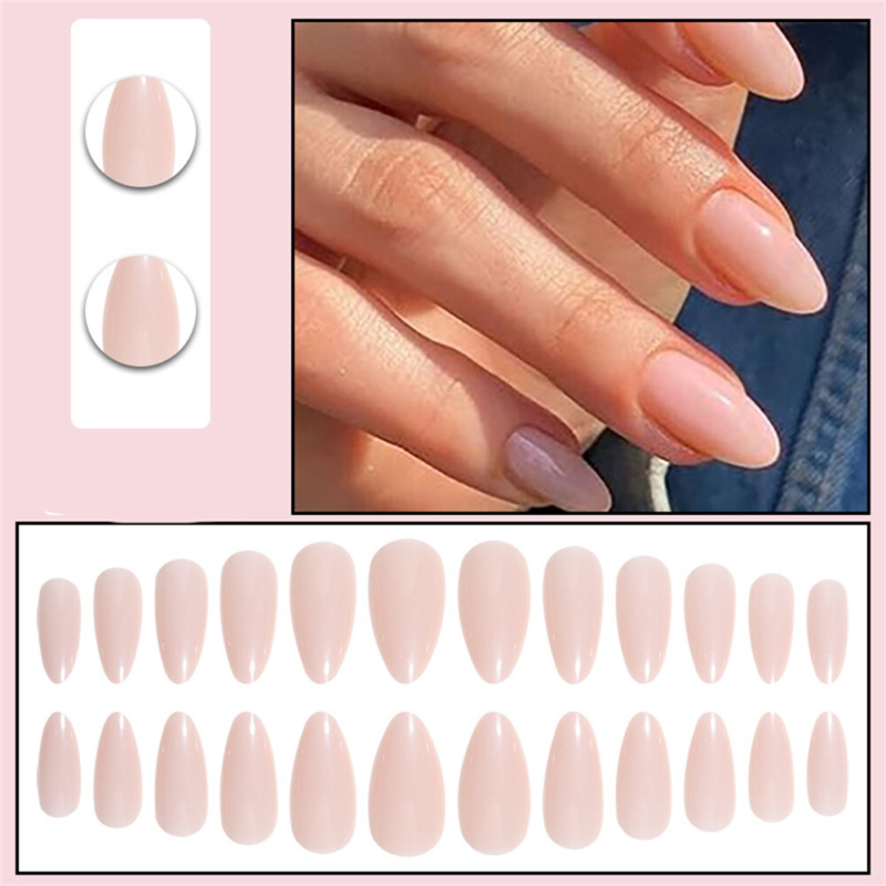 Glossy Nude Color False Nail Short Almond Press on Nails for Nail Art 24pcs