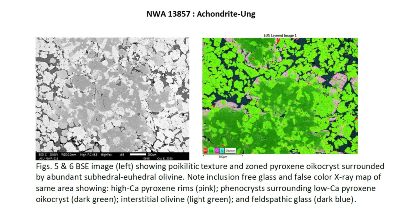 Meteorite NWA 13857 - Achondrite Ungrouped - Subhedral-Euhedral Olivine (52%)