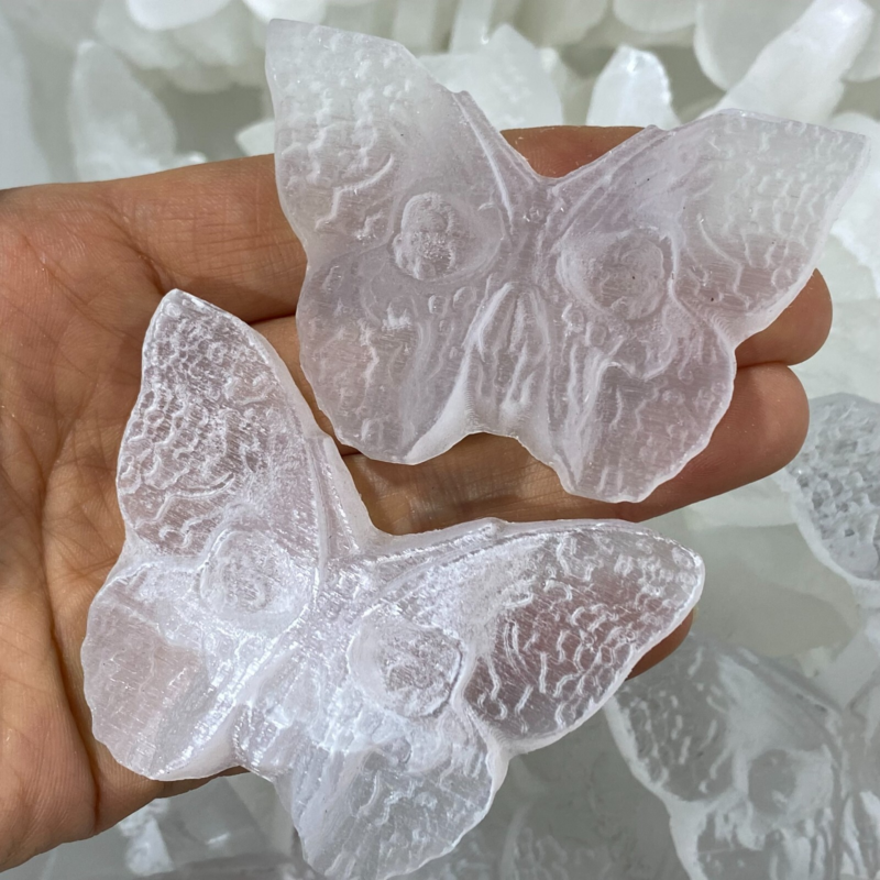 Natural Gypsum Selenite butterfly Hand Carved Quartz Crystal Reiki healing 1PC