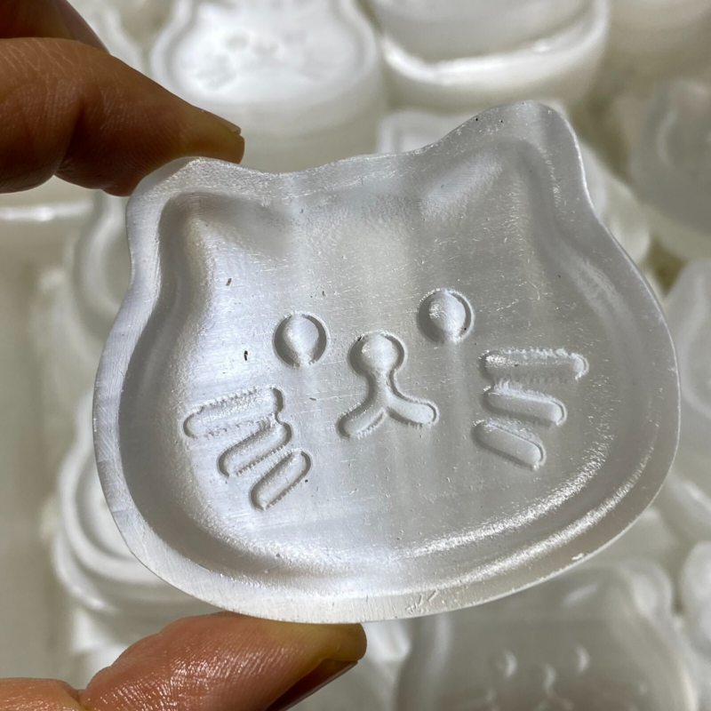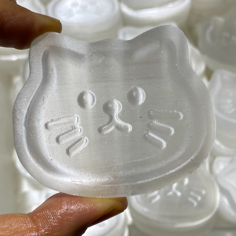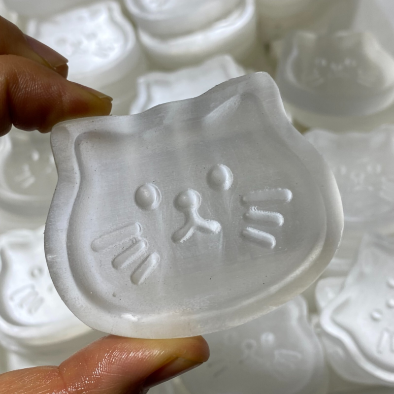 Natural Gypsum Selenite cat Hand Carved Quartz Crystal Reiki healing 1PC