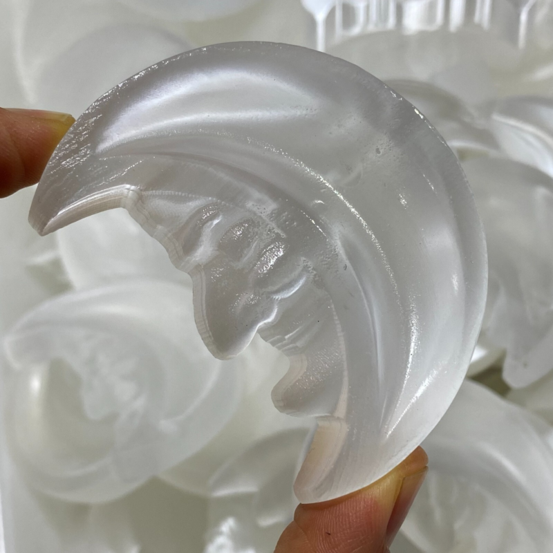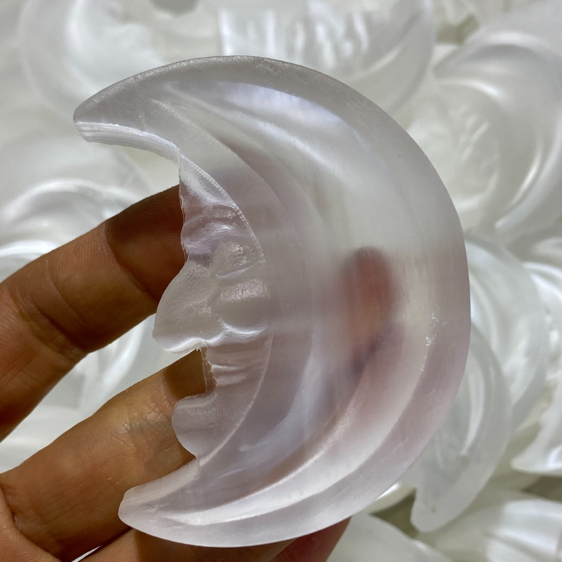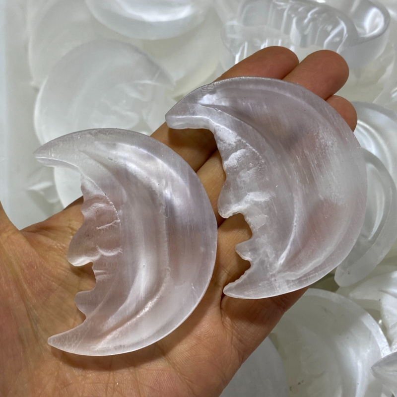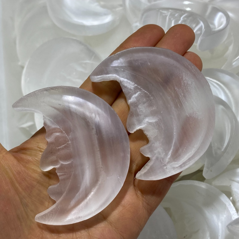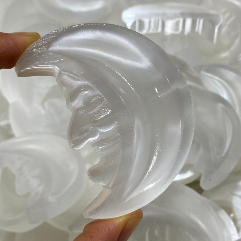 Natural Gypsum Selenite moon Hand Carved Quartz Crystal Reiki healing 1PC
