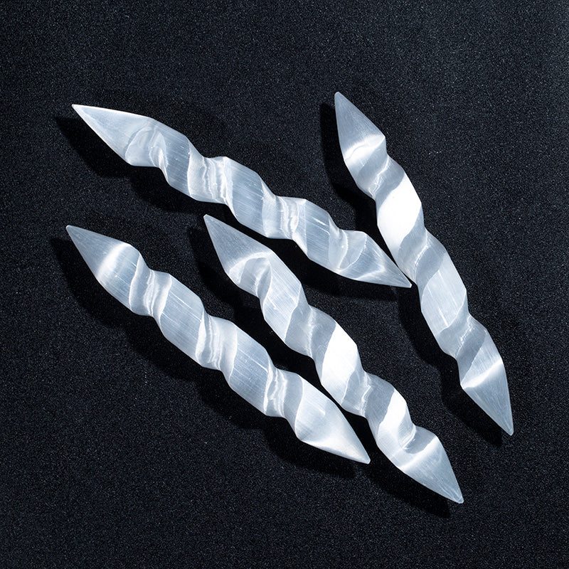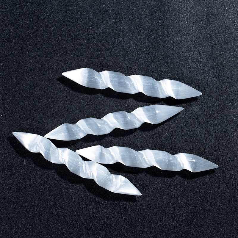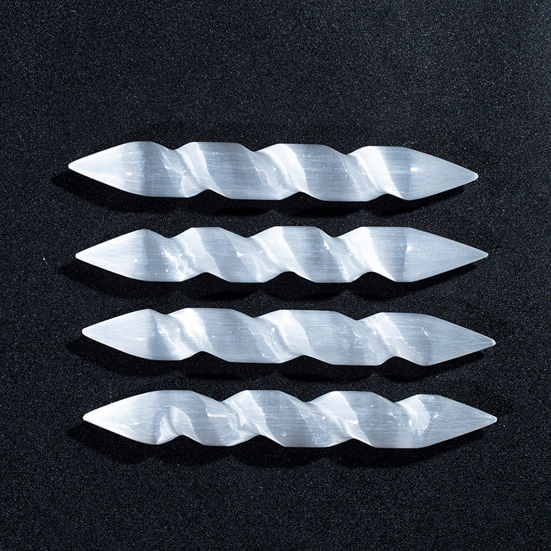 Varita espiral de doble punta de selenita blanca Natural, palo de masaje de yeso blanco