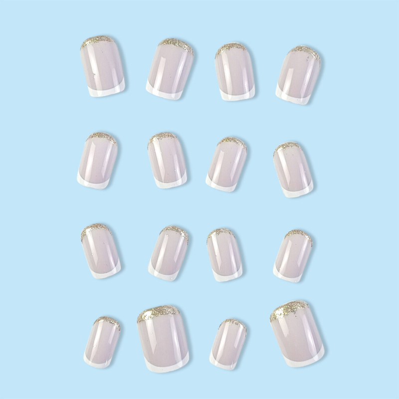 Nude Color Glitter False Nail Medium Square Press on Nails for Nail Art 24pcs