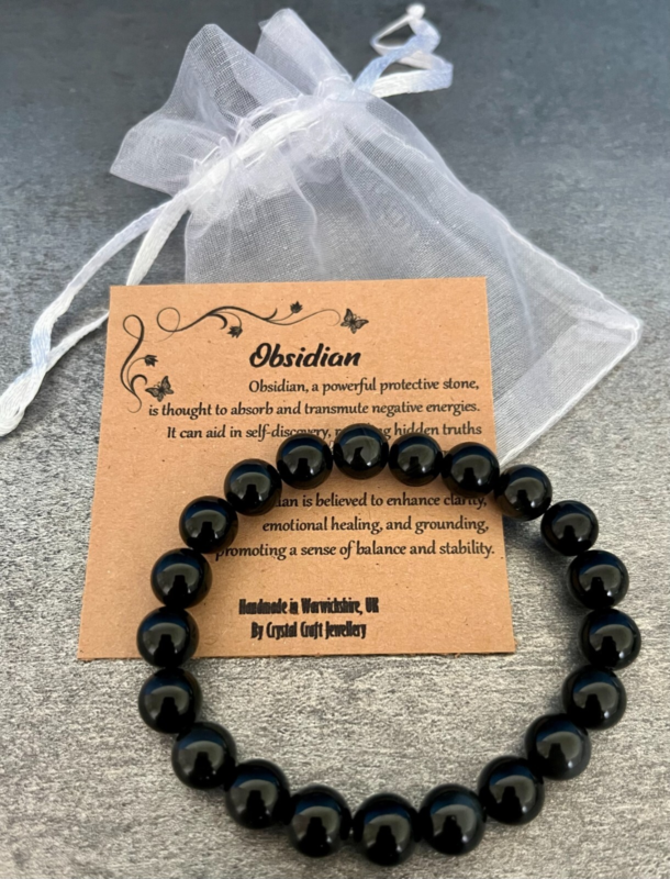 OBSIDIAN Bracelet Stretch Fit Handmade With Gift Bag & Card Crystal Gemstone 8mm