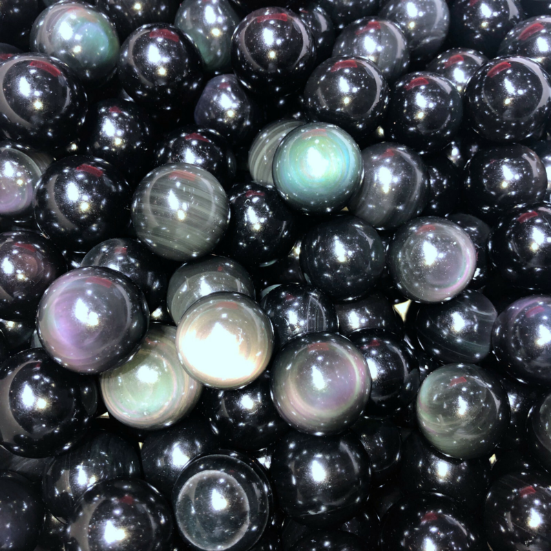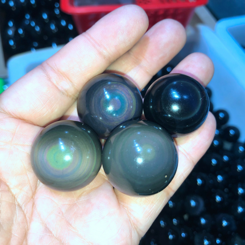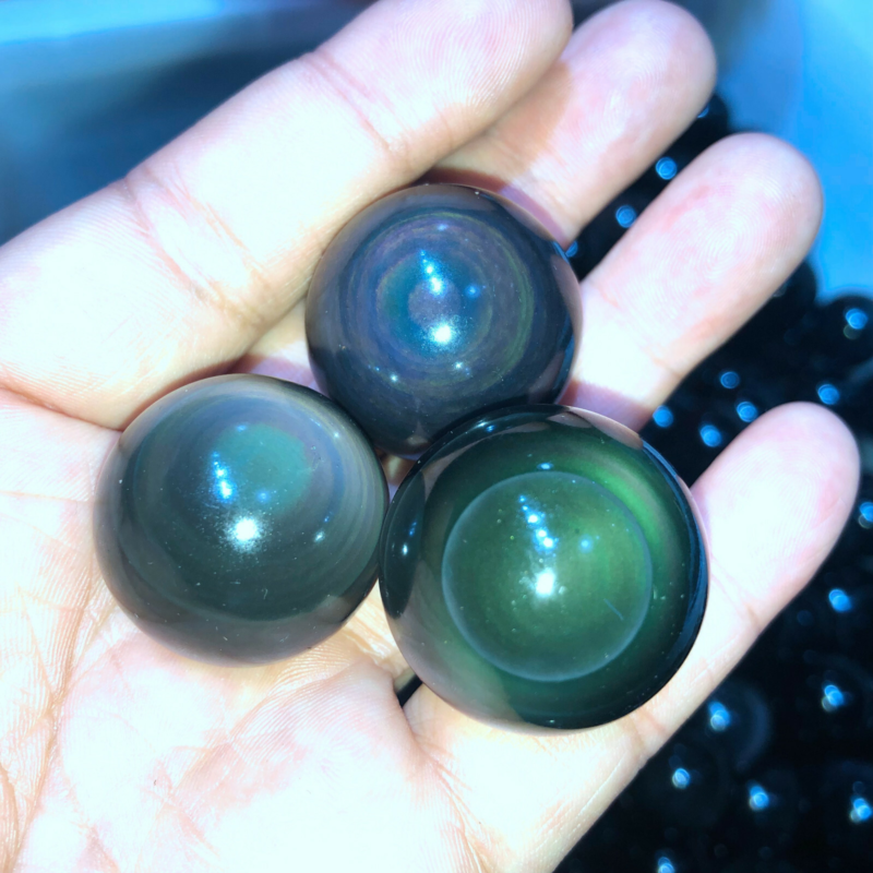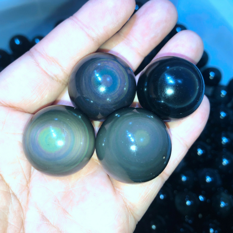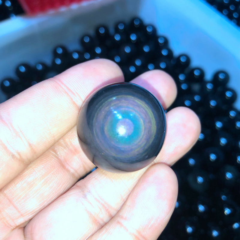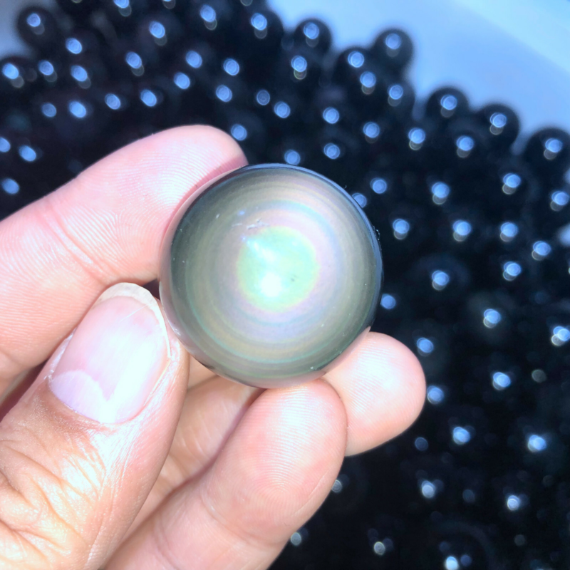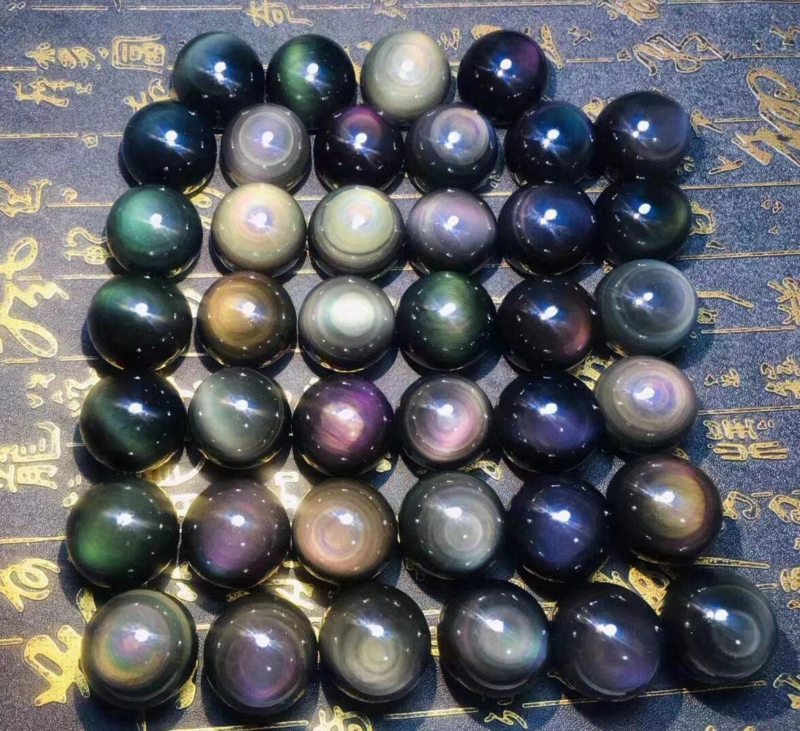Rainbow Natural Unique Cats Eye Obsidian Quartz Crystal Sphere Ball
