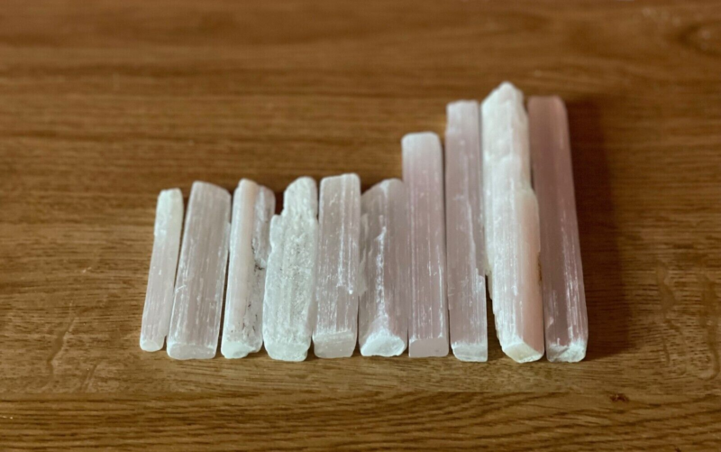 Selenite Crystal Wands (Lot of 10) Varying Sizes, Mineral Gypsum Stones