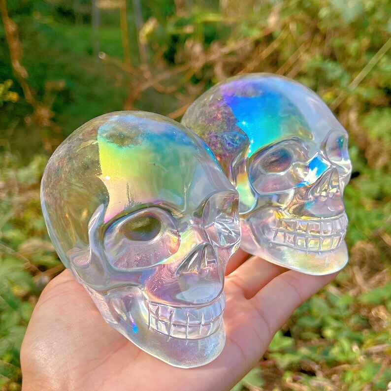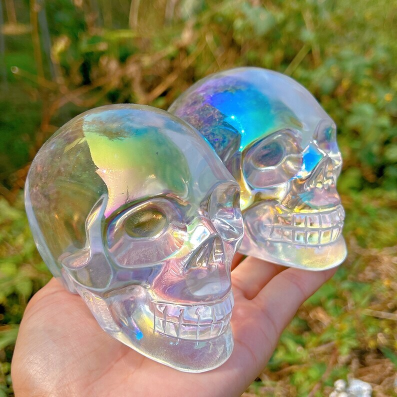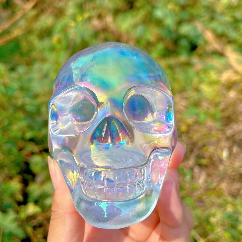 Titanium Rainbow Clear Melting stone Crystal Skull Reiki Heal Mineral Samples
