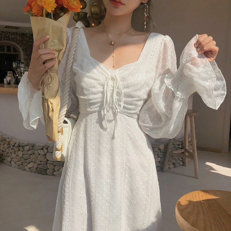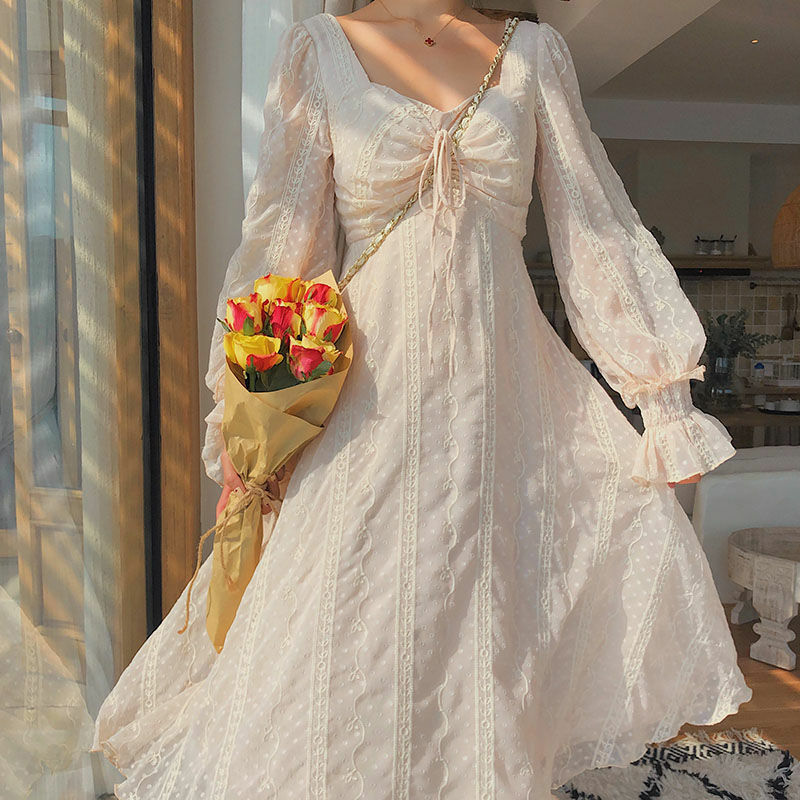 Vintage Fairy Dress Women Elegant Chiffon Dress Long Sleeve French Party Midi