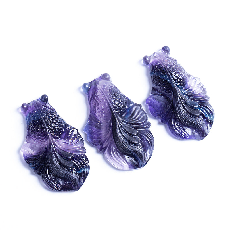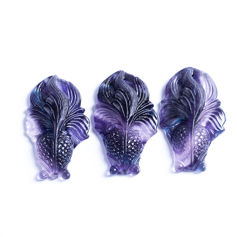 Venta al por mayor hermoso colgante de cristal de fluorita Natural tallado Animal fluorita arcoíris pez cristal