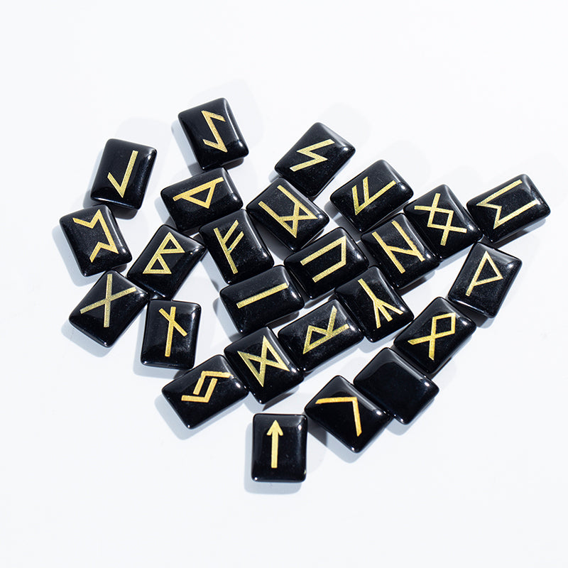 Venta al por mayor, juego de runas de piedra de caída de cristal Natural, piedras curativas de runas de obsidiana para adivinación