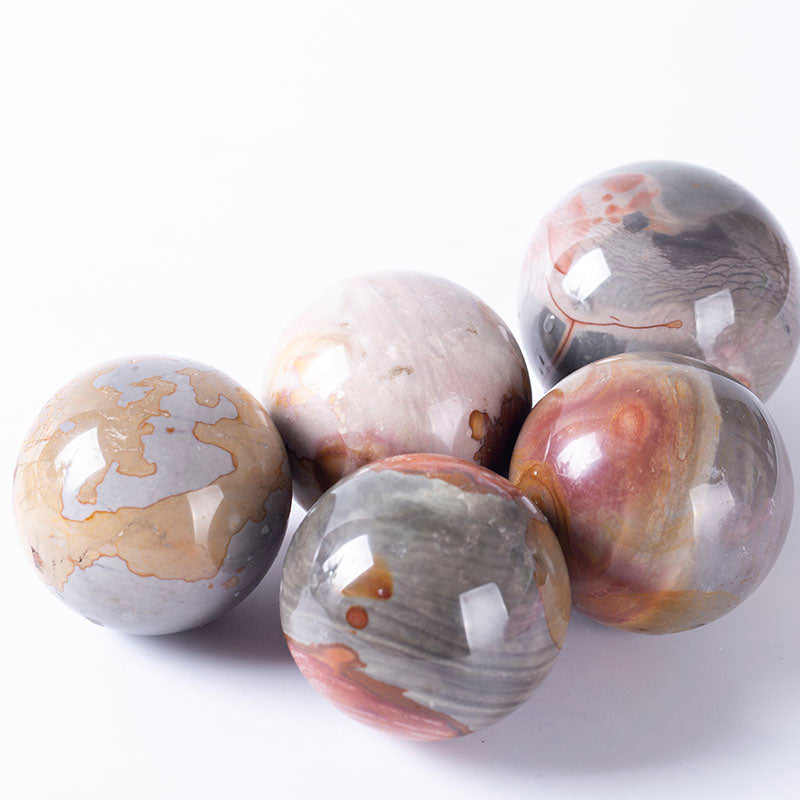 Precio al por mayor, bolas de cristal naturales multicolores naturales pulidas de jaspe oceánico para Feng Shui