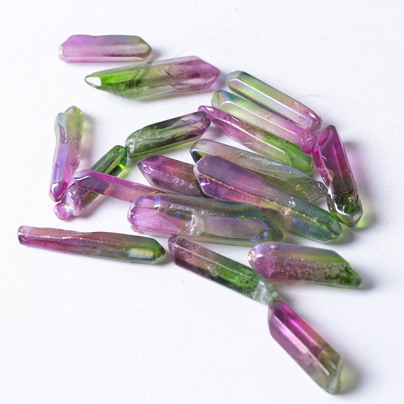 Venta al por mayor de piedras preciosas naturales de alta calidad, punta de cristal galvanizada