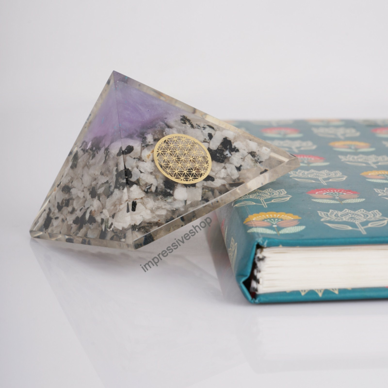 XL Rainbow Moonstone Orgone Pyramid Gemstone Crystal Healing Free Shipping