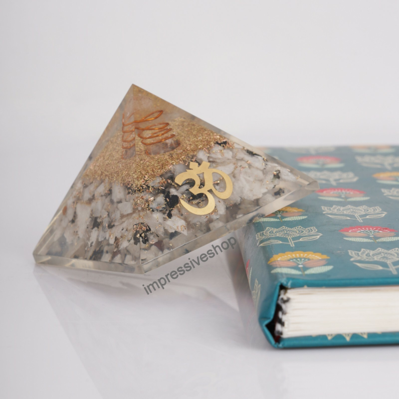 XL Rainbow Moonstone Orgone Pyramid Gemstone Crystal Healing Free Shipping