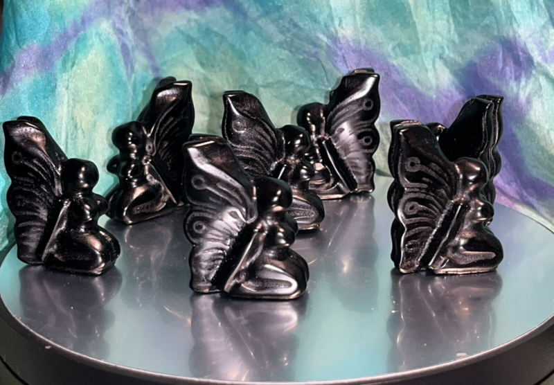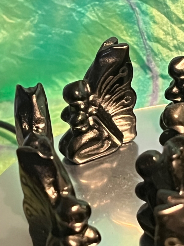✨ OBSIDIAN WINGED FAIRY 35mm Crystal Carving Gemstone Rare New