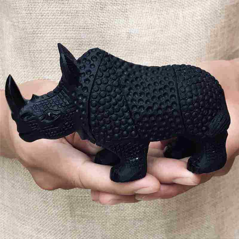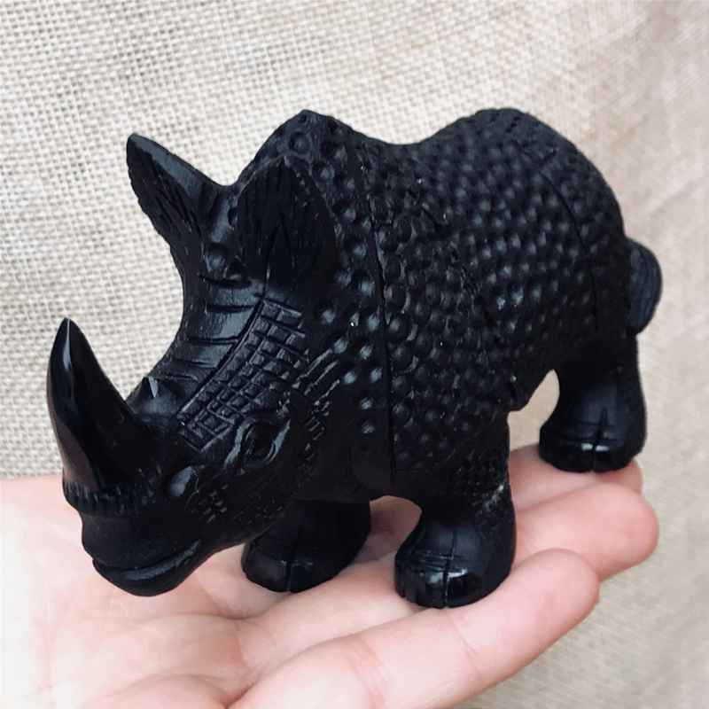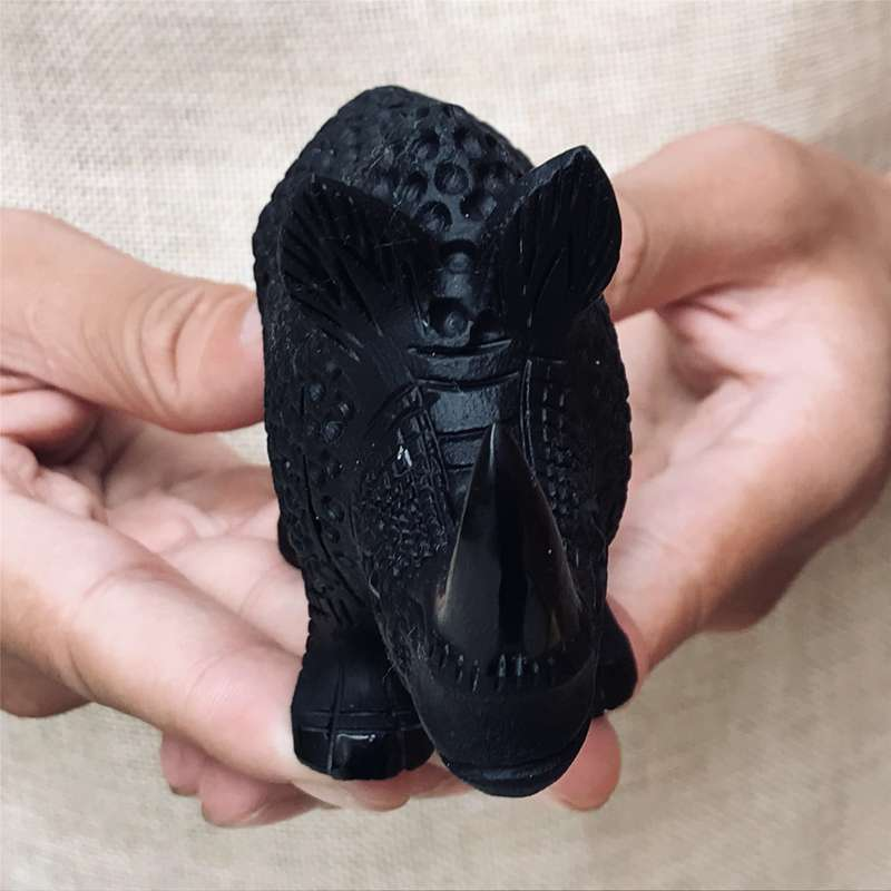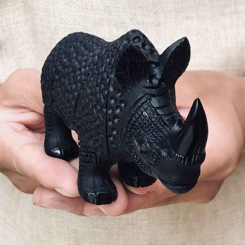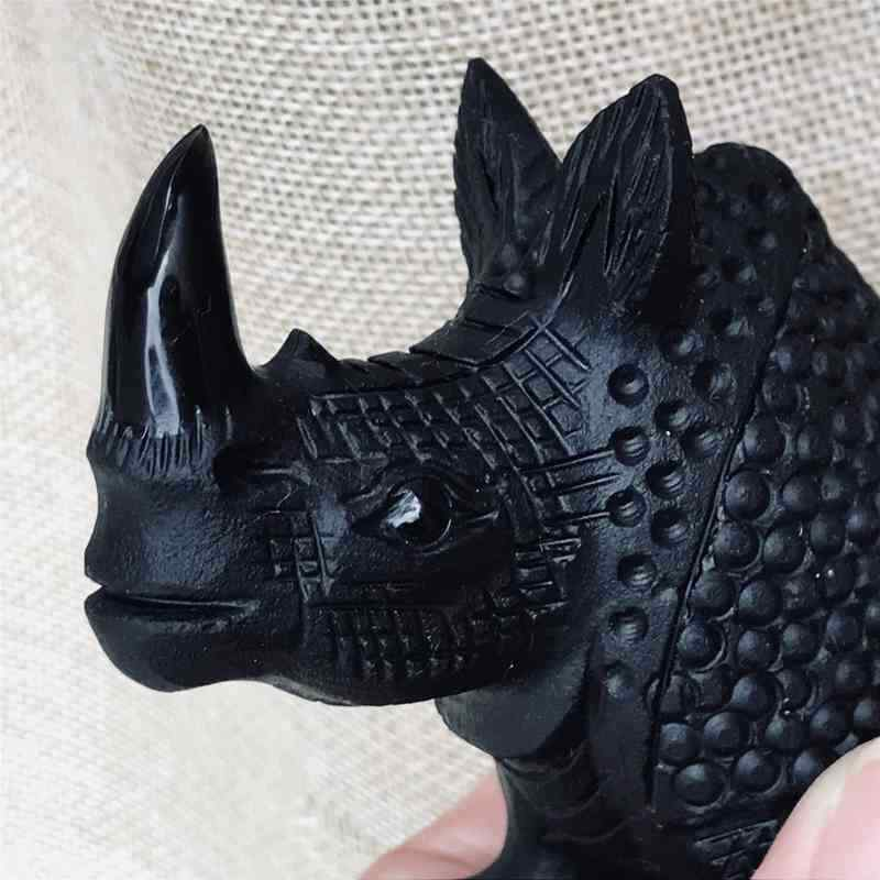 0.33kg Natural obsidian rhinoceros carved Quartz Crystal skull Healing