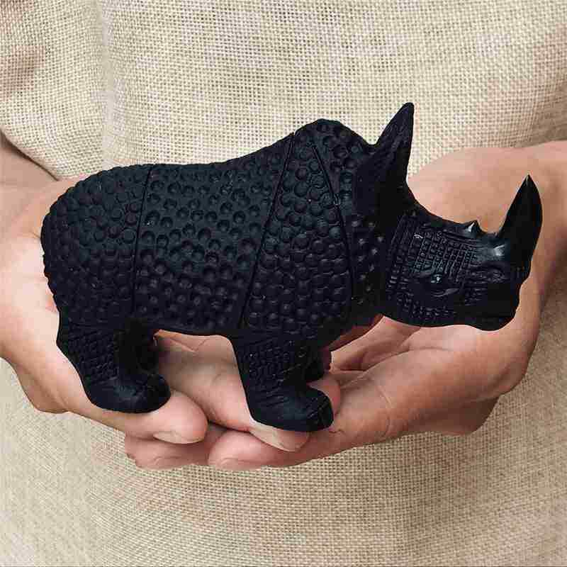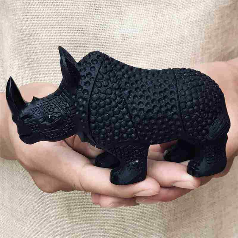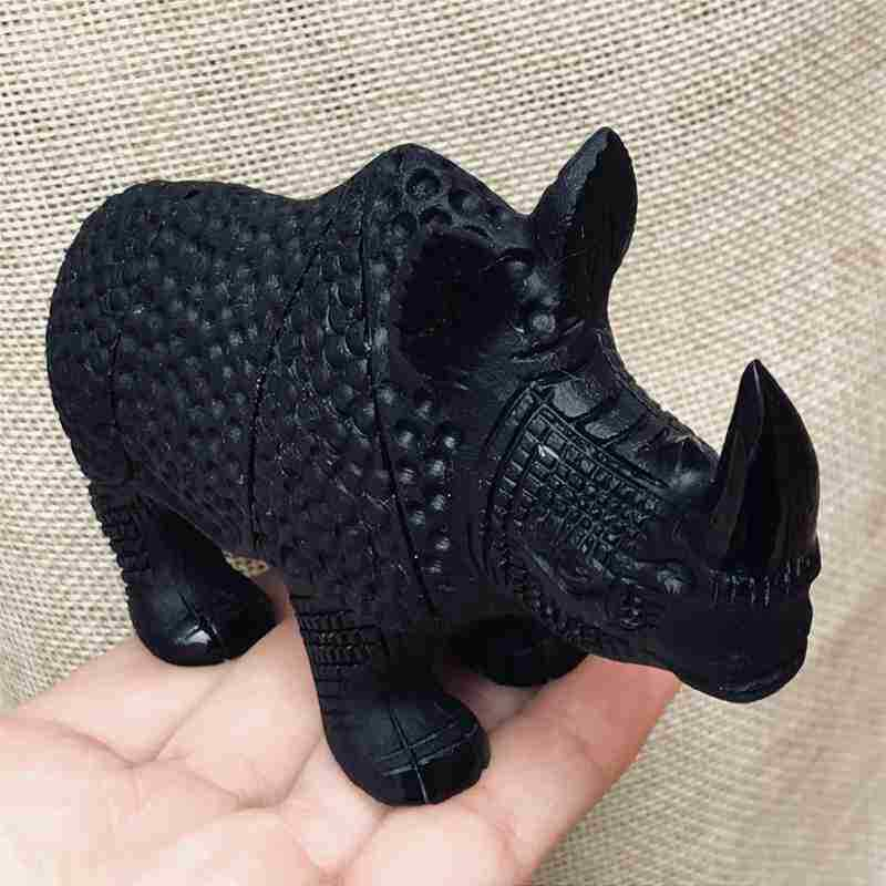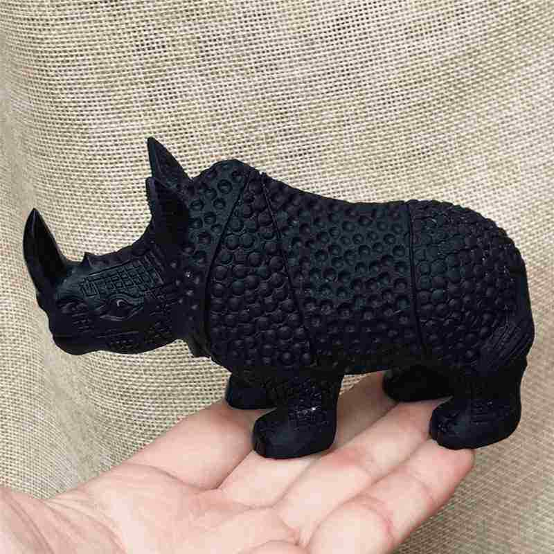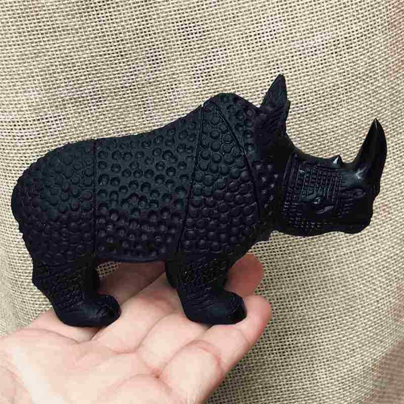 0.33kg Natural obsidian rhinoceros carved Quartz Crystal skull Healing