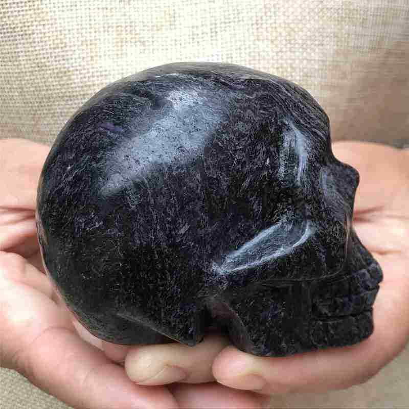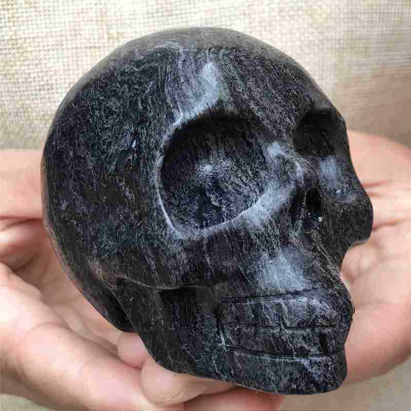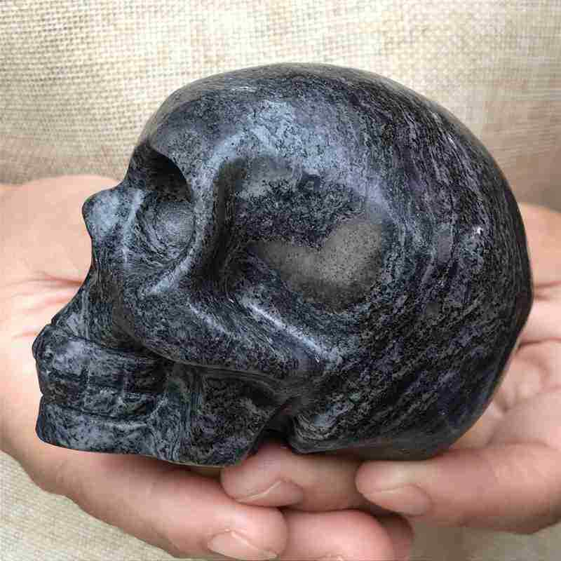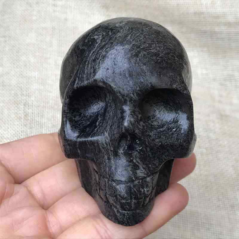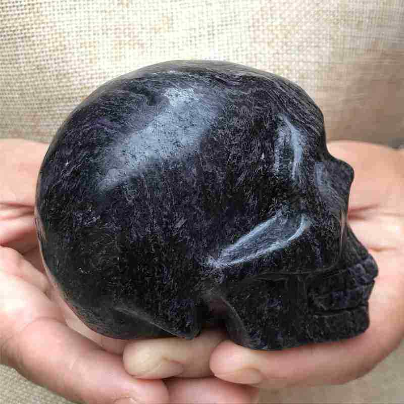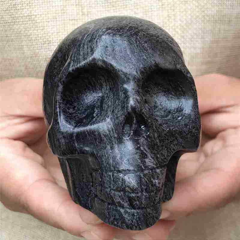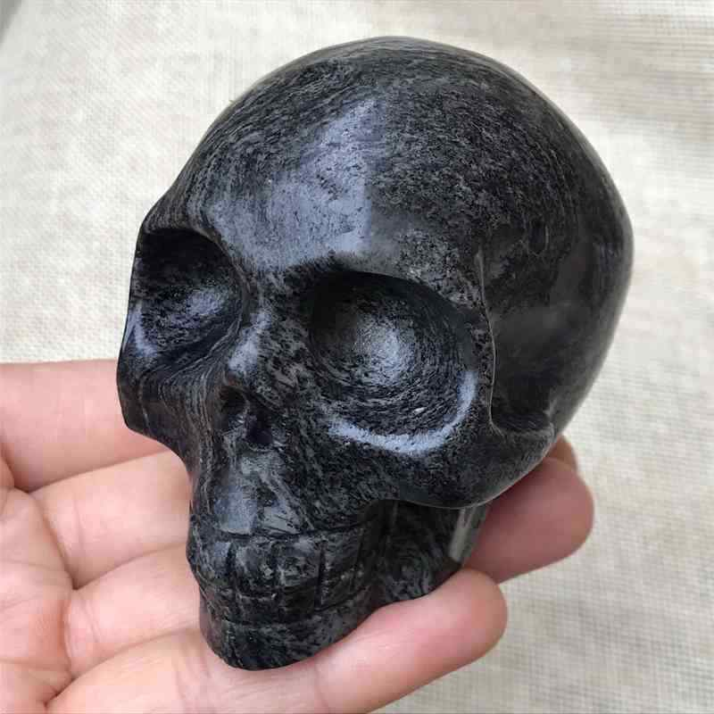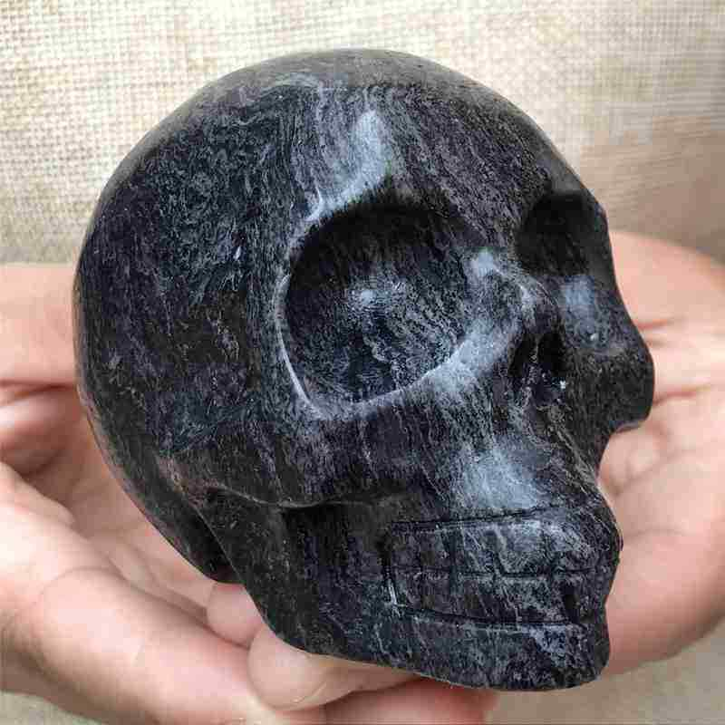 0.43Kg Natural black jade quartz skull carved Quartz Crystal skull Healing