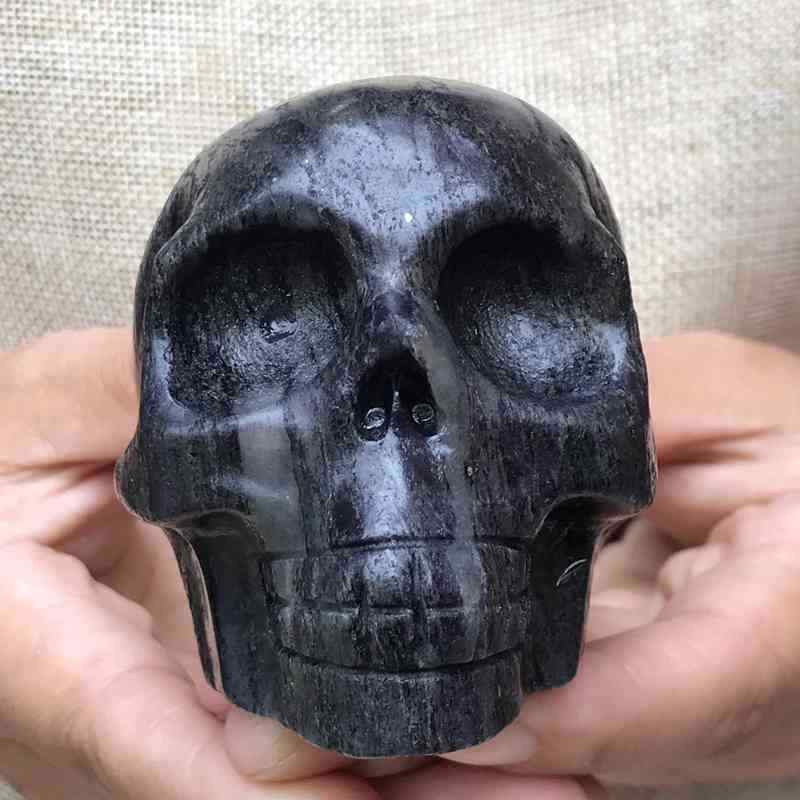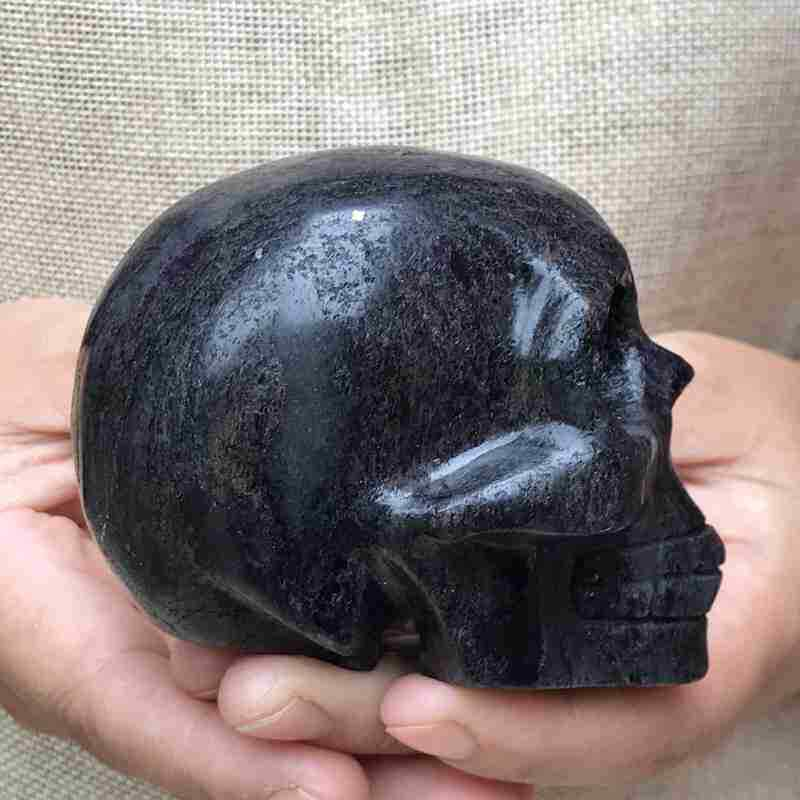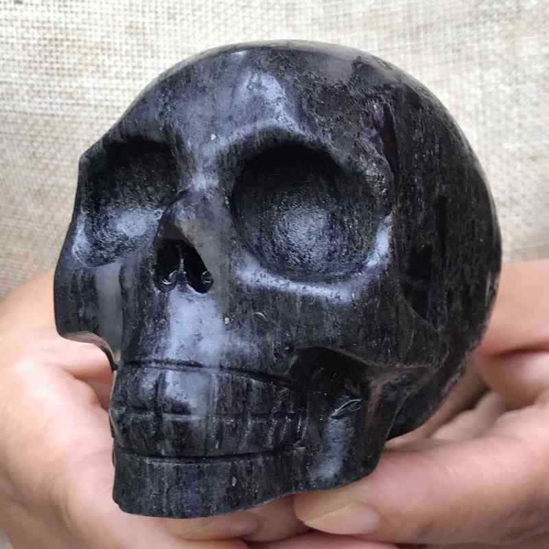 0.46Kg Natural black jade quartz skull carved Quartz Crystal skull Healing
