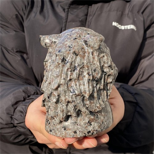 1.31kg Natural Carved Yooperlite Tiger Head Figurines Reiki Quartz Crystal Skull