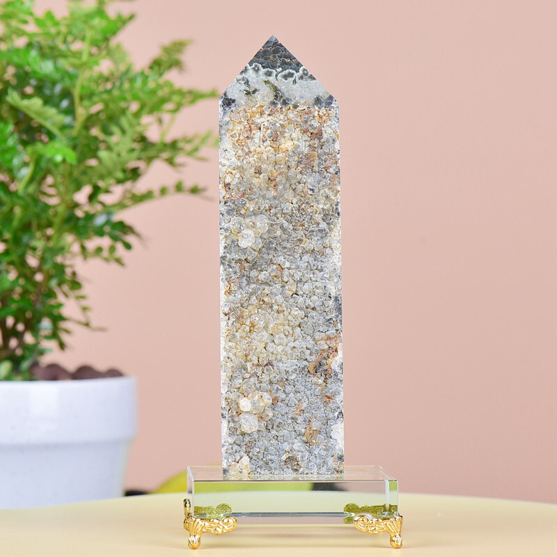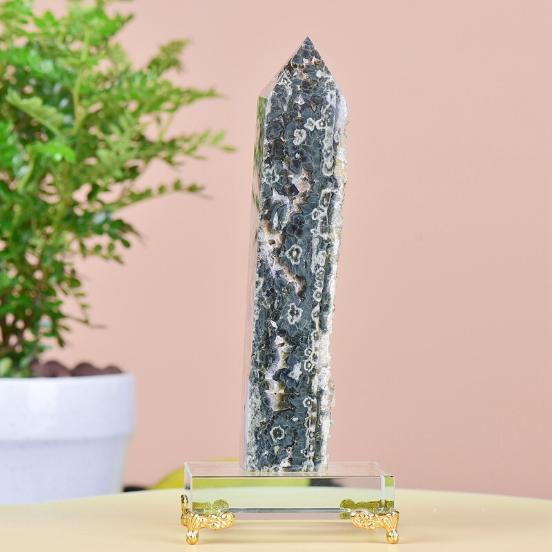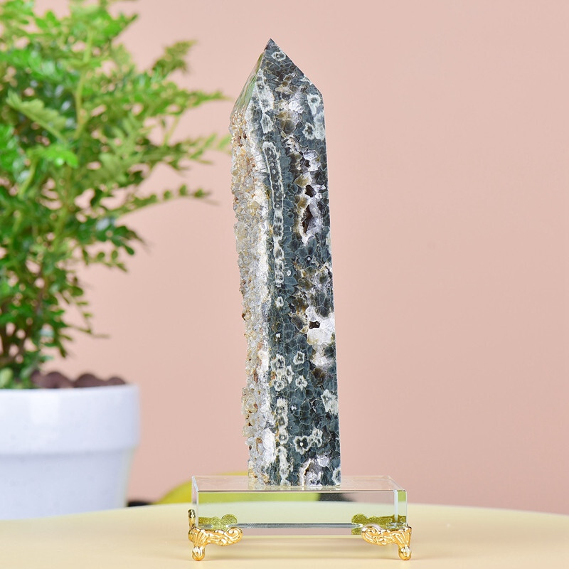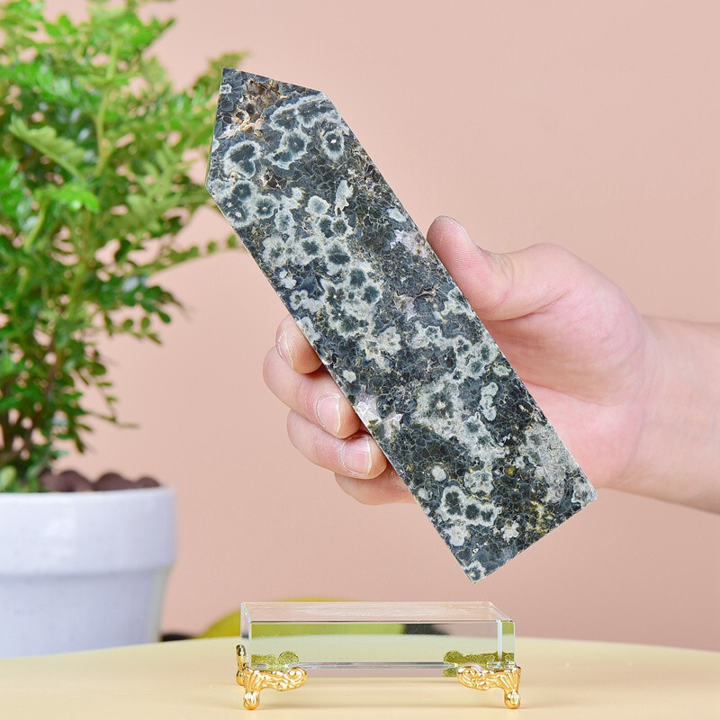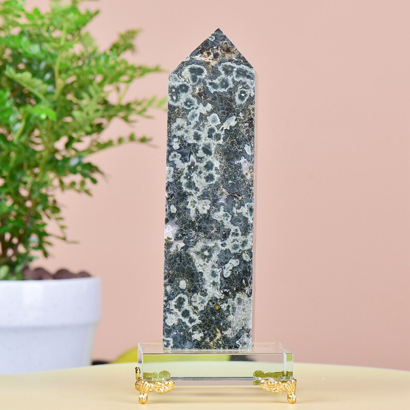 1.34LB Natuar Ocean Jasper Crystal Obelisk Point Wand Stone Quartz Healing