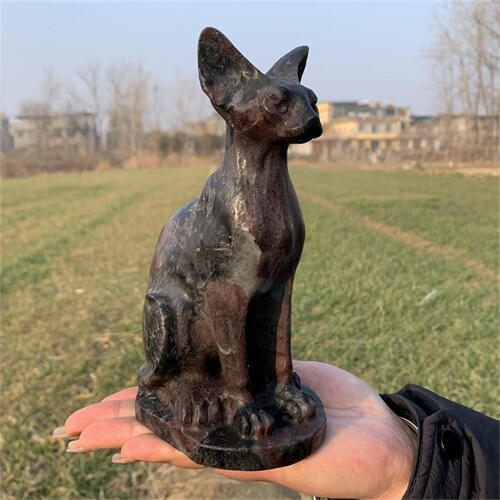 1.46kg Natural Carved Garnet Cat Figurines Reiki Quartz Crystal Skull Decor