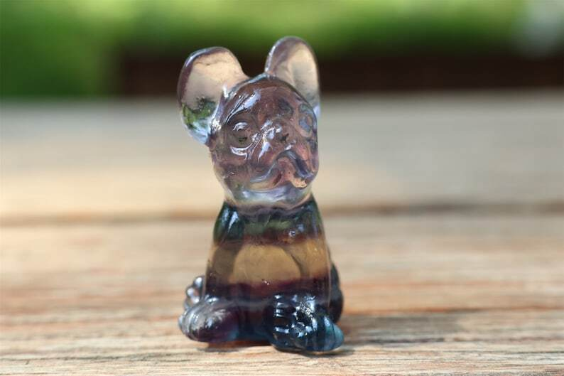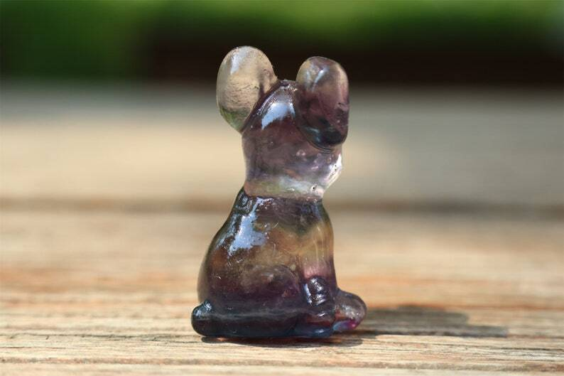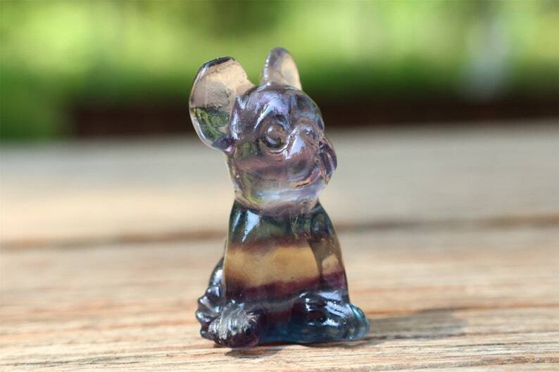 1.6" Natural Carved Fluorite dog Reiki Crystal Skull Crystal Heal Decor Gift 1PC