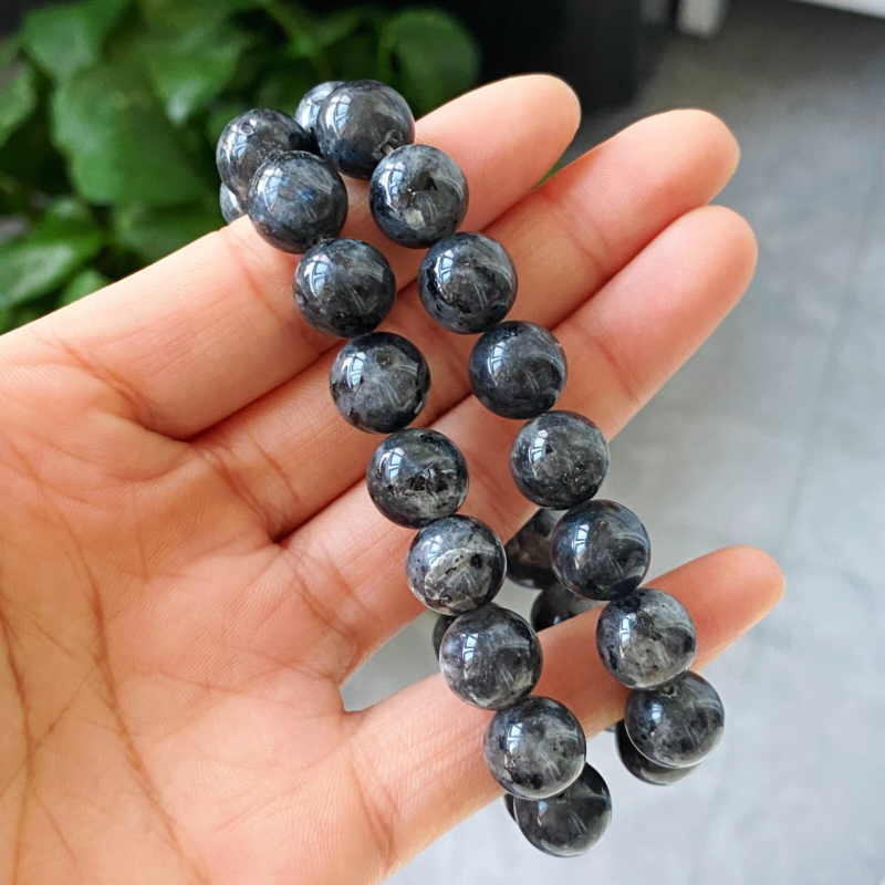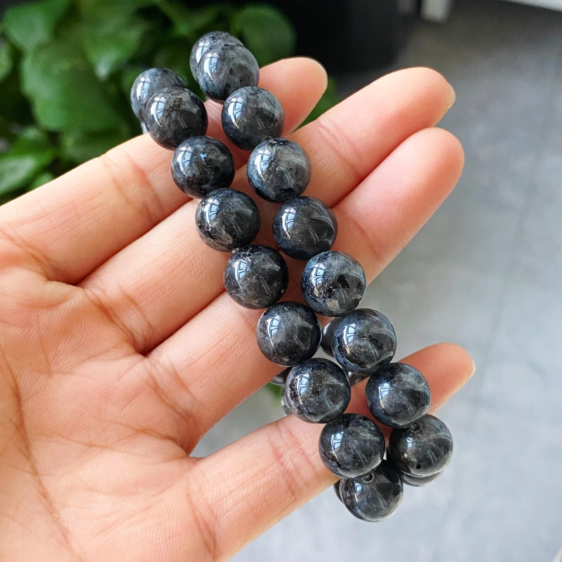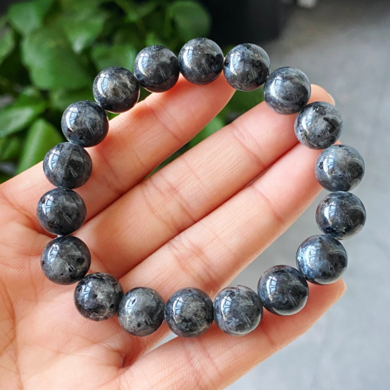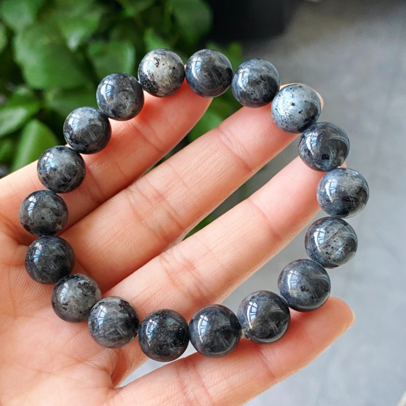 10.5mm 2pcs Natural Flashy LARV Labradorite Silver Light Gemstone Beads Bracelet