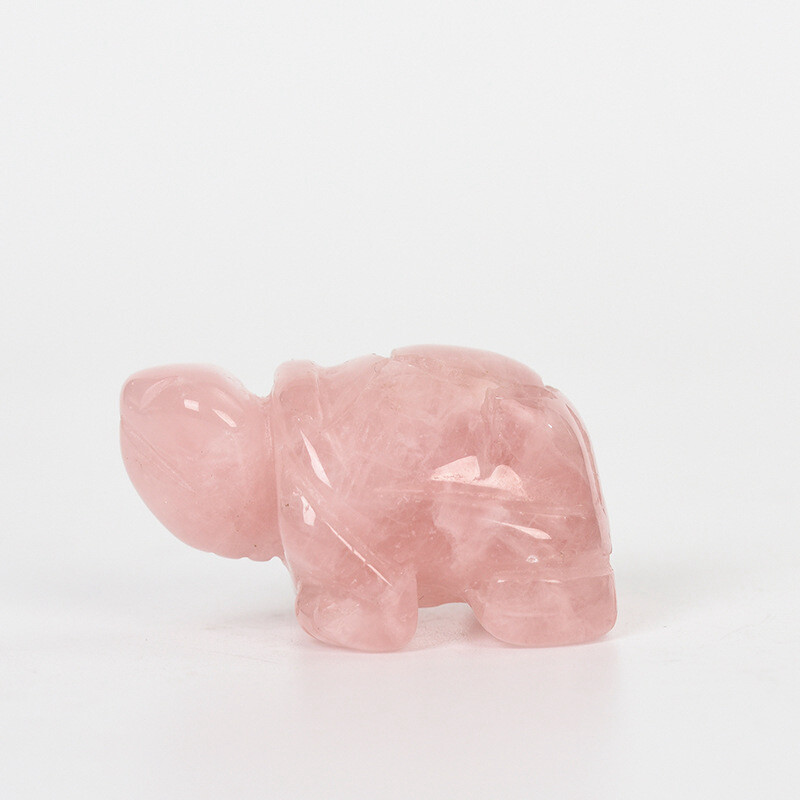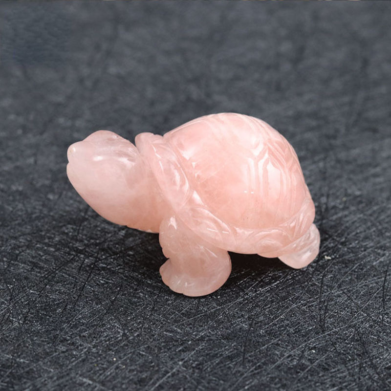 10x Natural Rose Quartz Carved Longevity Tortoise Crystal Animal Turtle Ornament