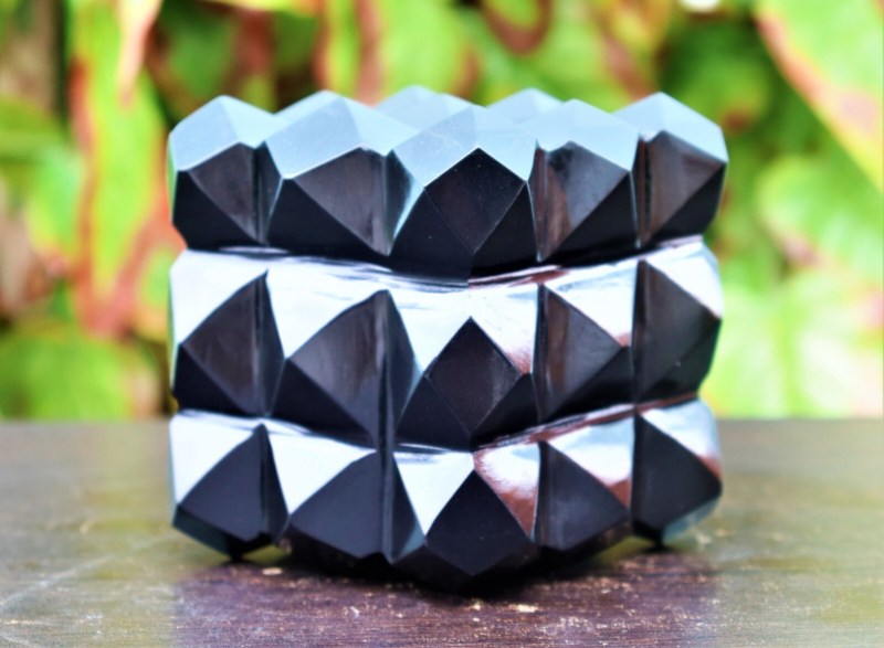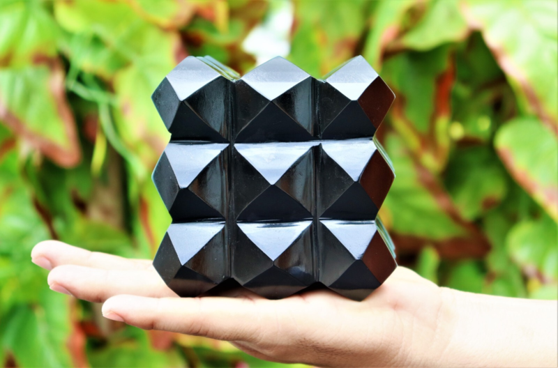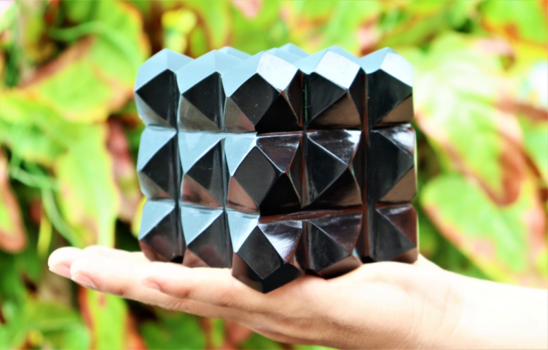 11CM Natural Black Tourmaline Meditation Healing Power Stone 54 Pyramid Cube