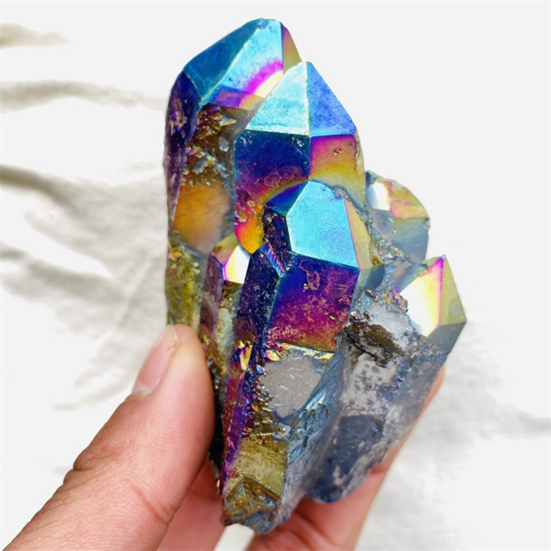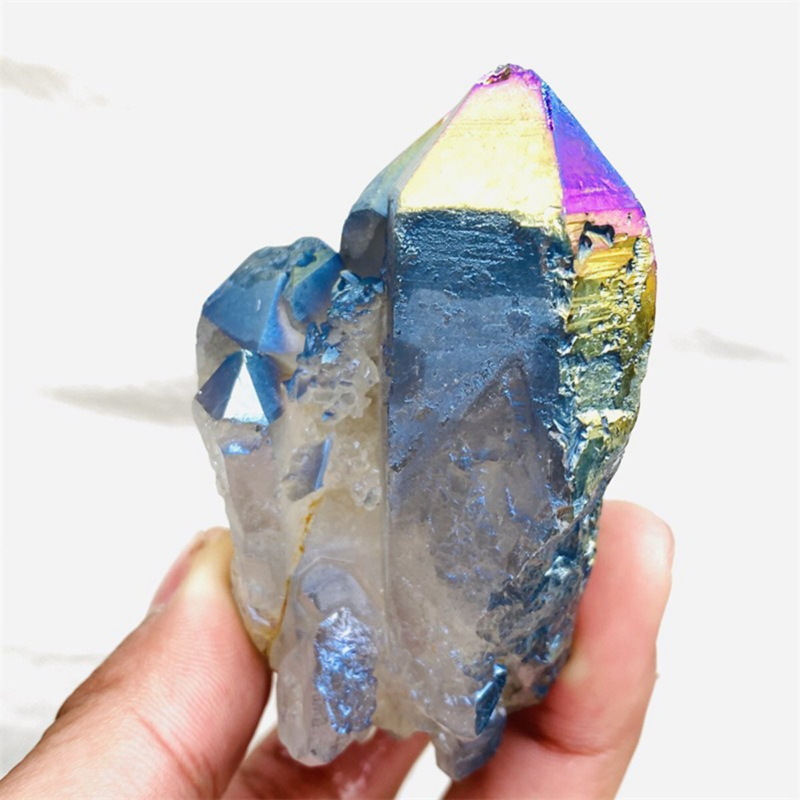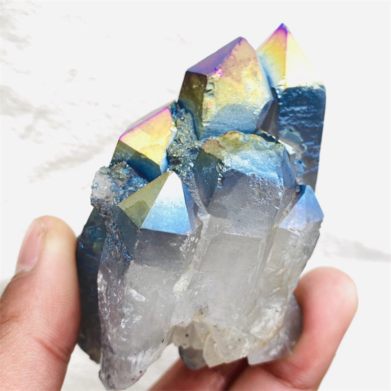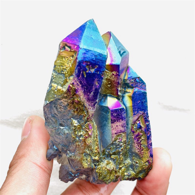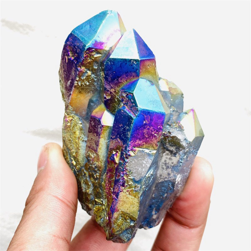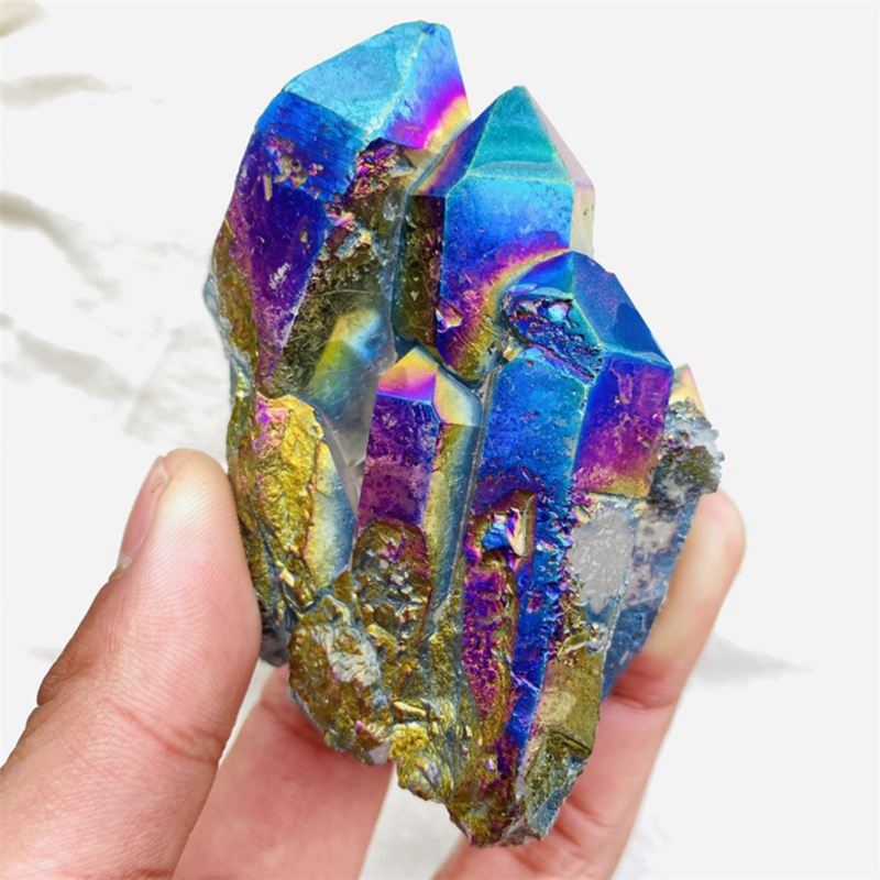 120gColor Flame Aura Electroplate Quartz Crystal Cluster Specimen Healing Stone