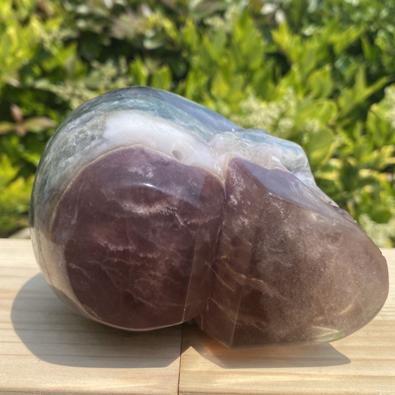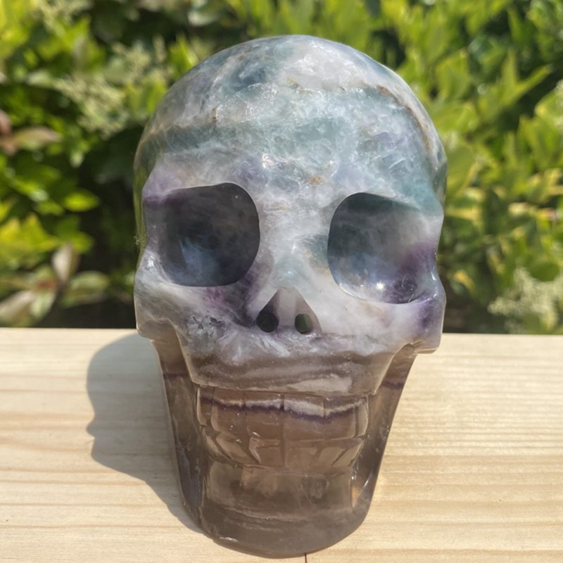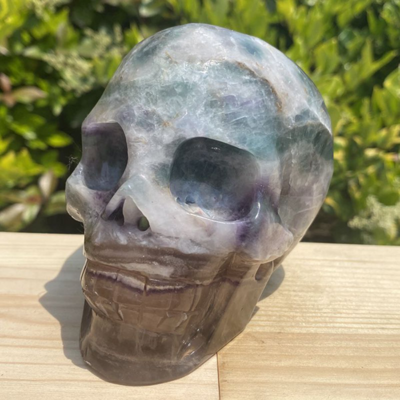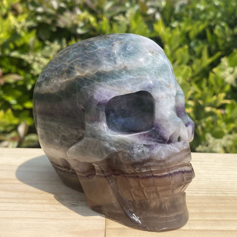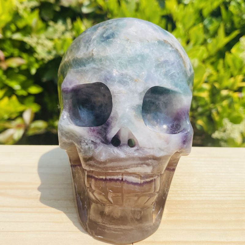 1257g Natural Beantiful Fluorite Quartz Skull Hand Carved Crystal Healing Skull